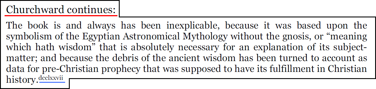 Pages 150-151 - référence dlxxxviii qui nous conduit à l'index page 316 (dlxxxviii. A. Churchward, 376.)