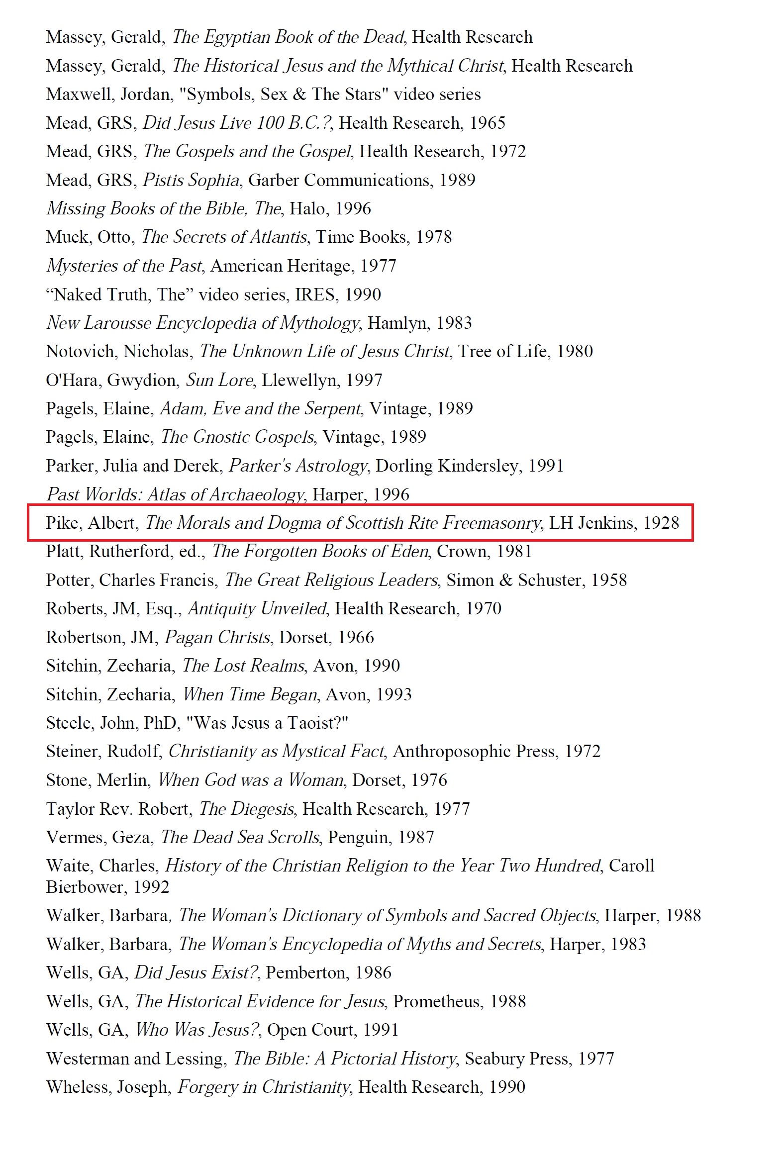 Albert Pike est cité 26 fois par Acharya S