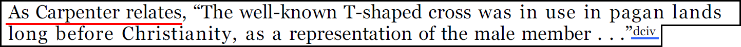 Le livre "The Christ Conspiracy" d'Acharya, qui est une source principale de Zeitgeist, contient 20 citations du livre d'Edward Carpenter, intitulé "Pagan and Christian Creeds".
