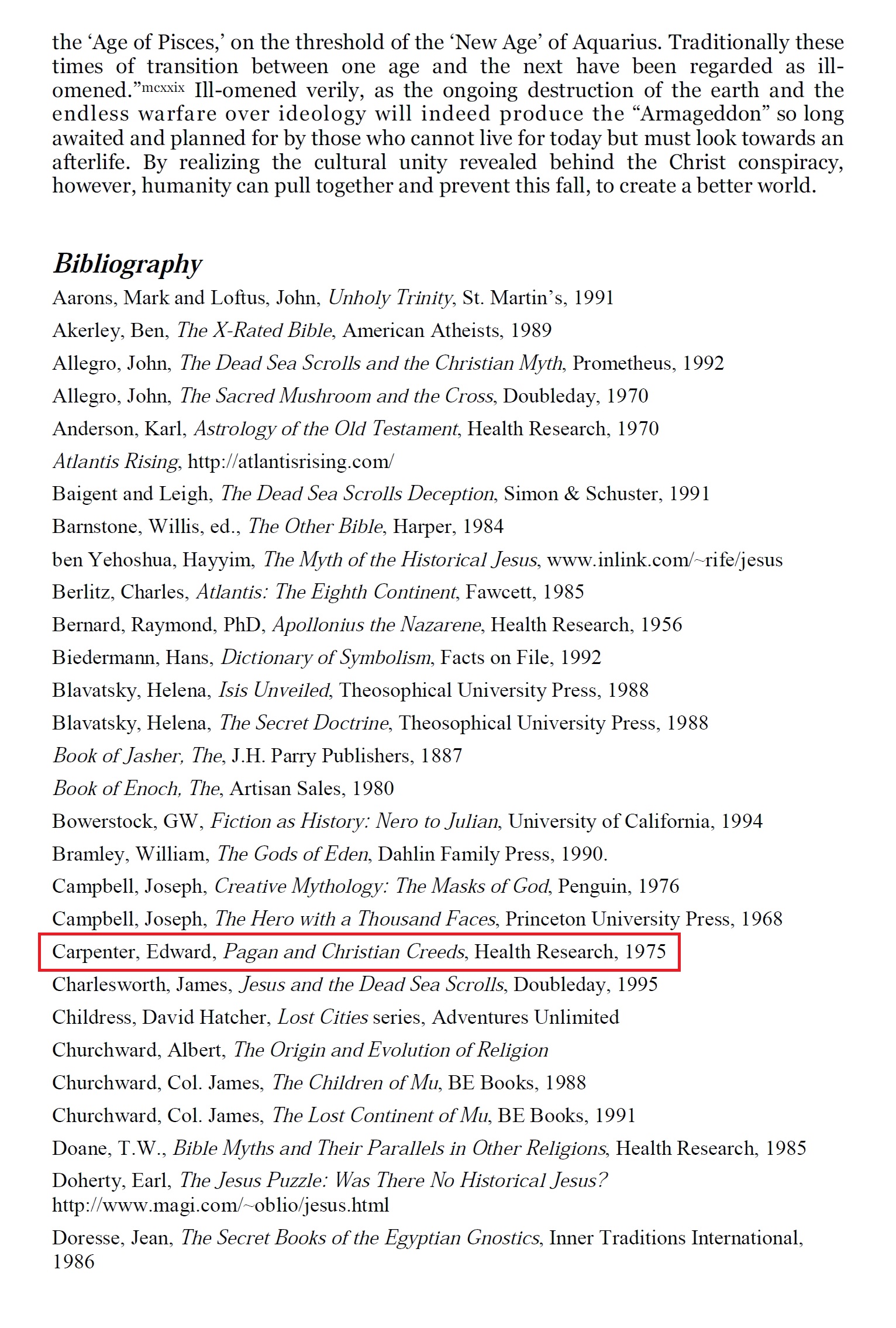 Edward Carpenter cité 20 fois par Acharya S