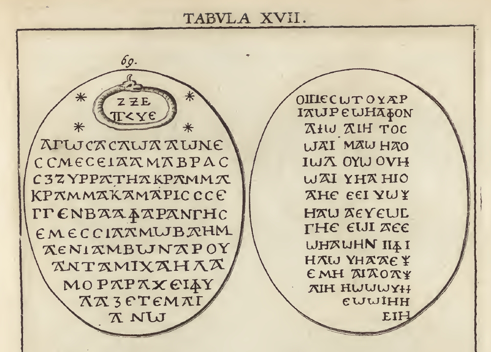 ➜ Le contexte de cette citation c'est l'éthymologie du mot « Abraxas », où la figure LXIX de Chifflet est cité pour son évocation à ce sujet.