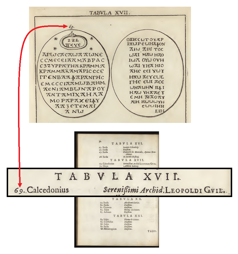 ➜ Calcedonius = Calcédoine | LEOPOLDI. GVIL. fait référence à Léopold-Guillaume de Habsbourg