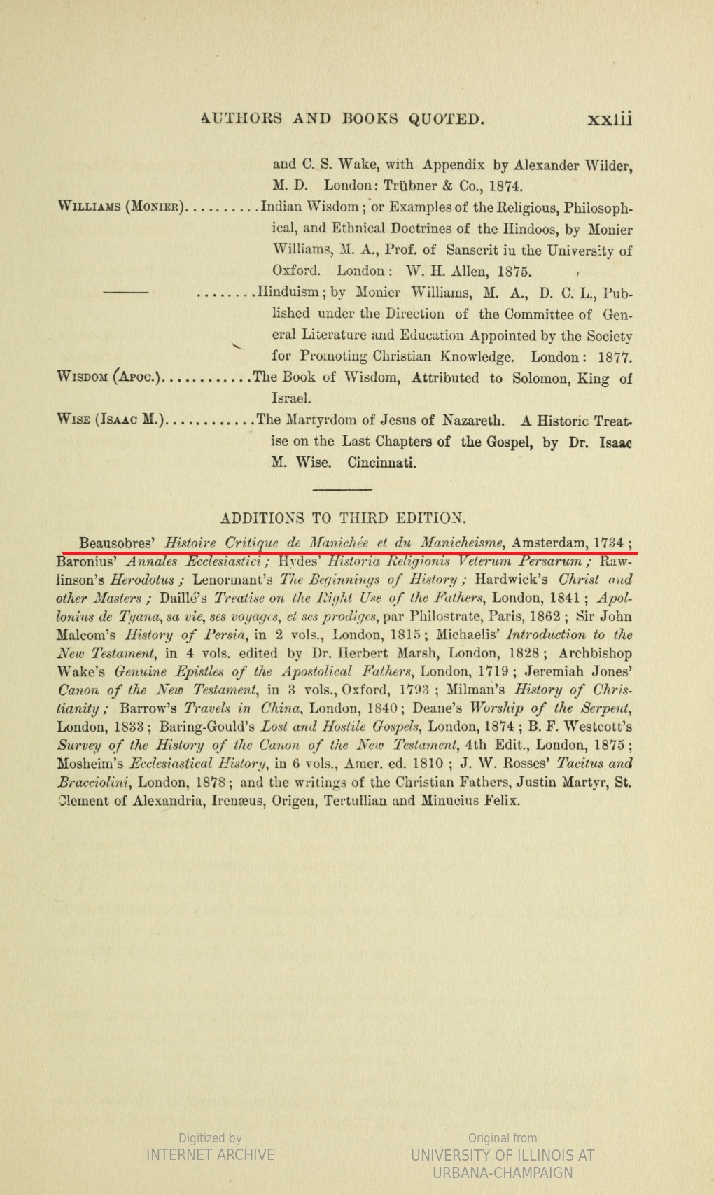 ➜ Cette page 23 nous conduit à Histoire critique de Manichée et du Manicheisme, Volume 1, page 56