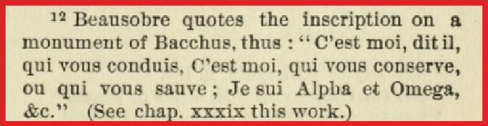 ➜ Cette note en bas de page 193 nous conduit à une citation d'un certain Beausobre, qui aurait mentionné une inscription d'un monument de Bacchus :