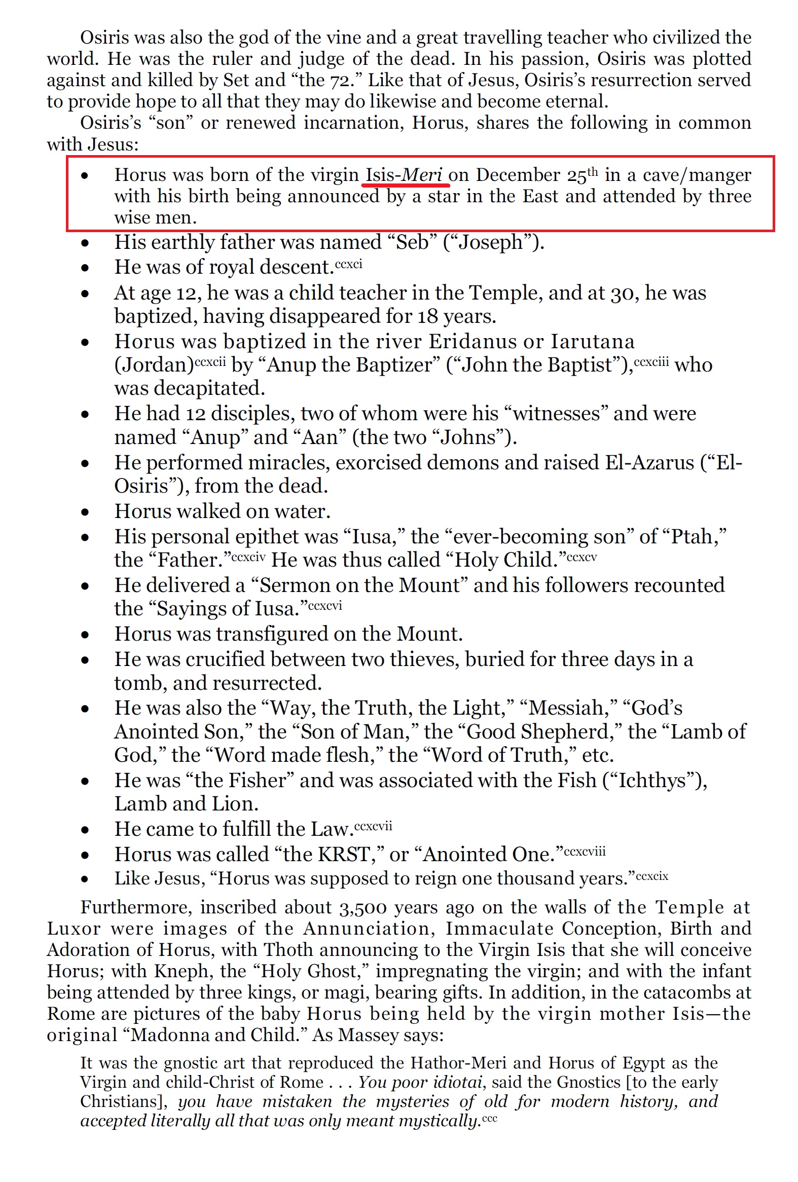 Si on regarde cette page 84, on constate que ces allégations ne sont étayées par aucune source. « isis-Meri » c'est juste de la tromperie auditive. Exactement comme le « God's Sun » en parallèle à « God's Son ».