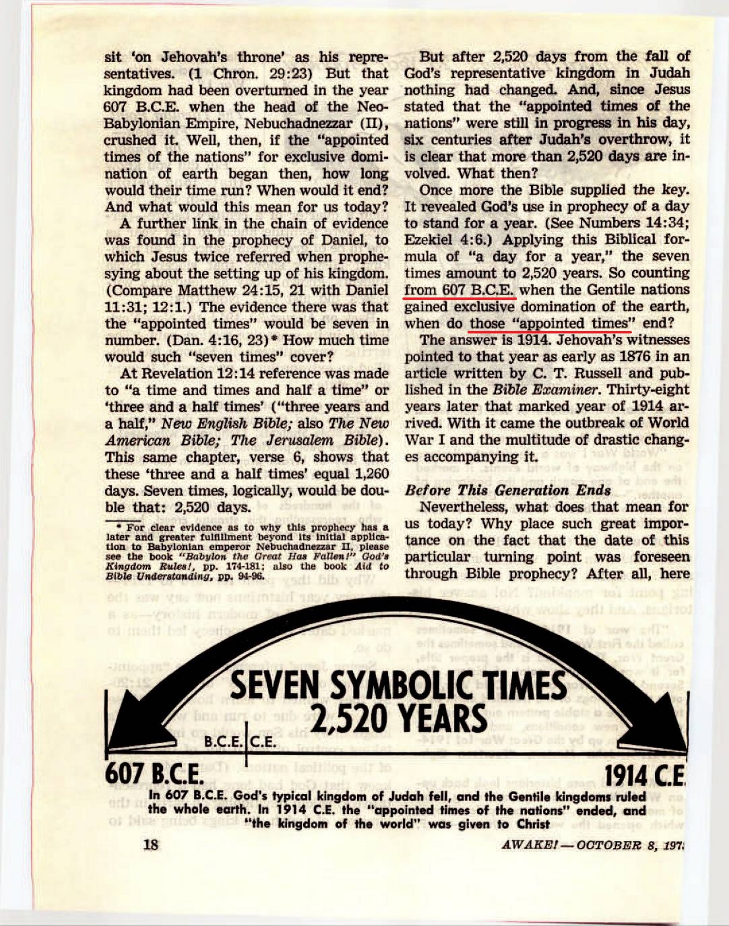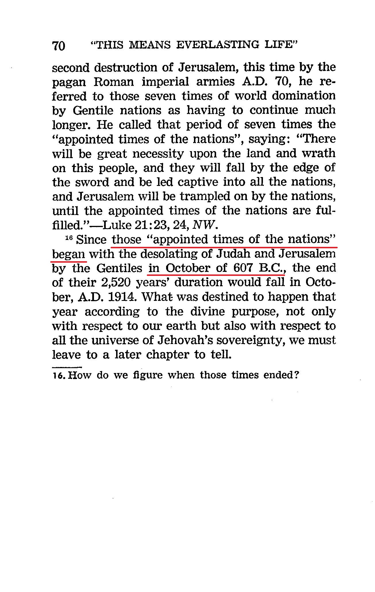 Since those "appointed times of the nations" began with the desolating of Judah and Jerusalem by the Gentiles in October of 607 B.C., the end of their 2,520 years' duration would fall in October, A.D. 1914.
