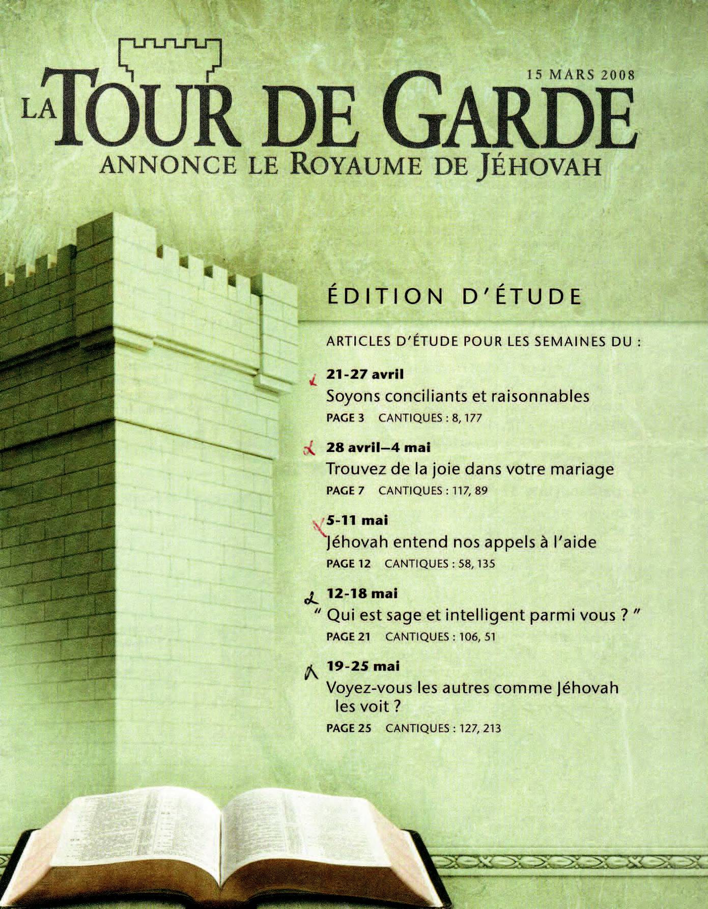 Source : 🇫🇷 La Tour de Garde (Etude), 15 Mars 2008, page 4, page 5 + Cover |