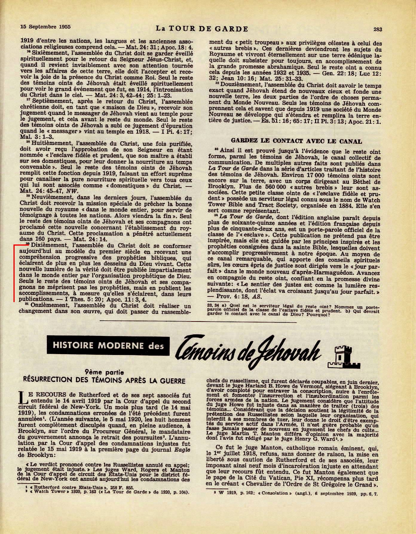Source : 🇫🇷 La Tour de Garde, 15 Septembre 1955, page 283 + Cover |