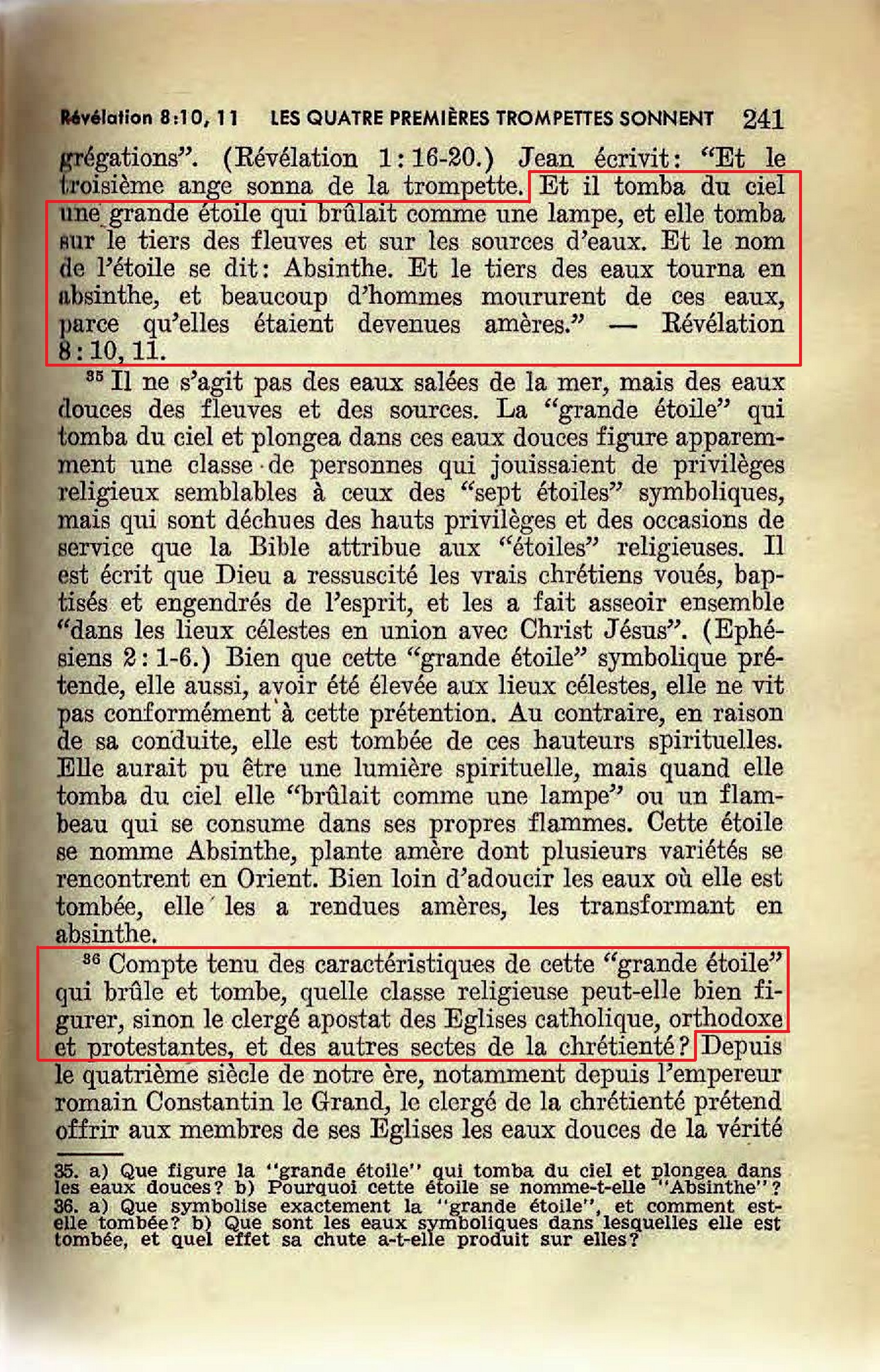 [...] «Compte tenu des caractéristiques de cette "grande étoile qui brûle et tombe, quelle classe religieuse peut-elle bien figurer sinon le clergé apostat des églises catholique, orthodoxe et protestante et des autres sectes de la chrétienté.»