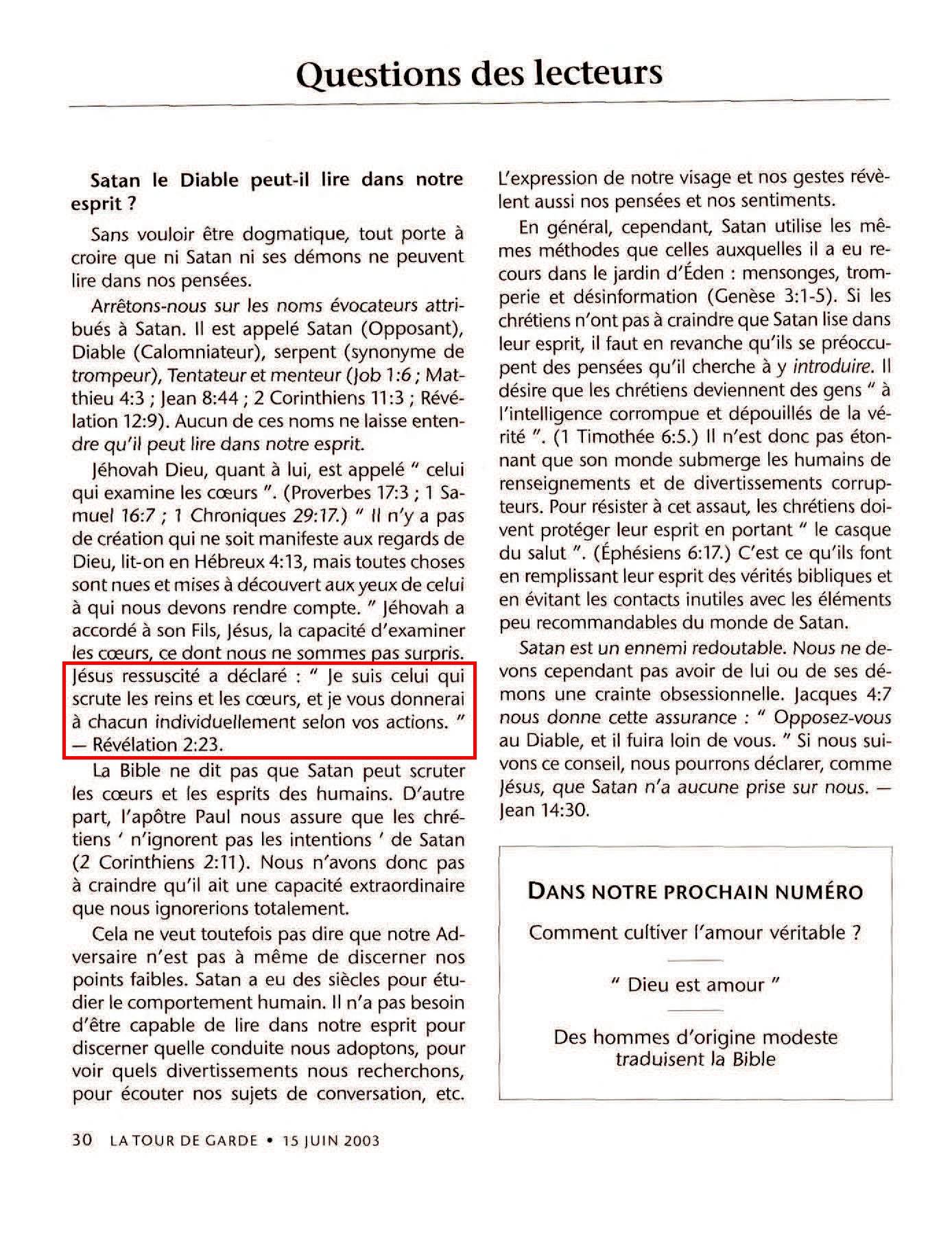 - Révélation 2:23. Source : 🇫🇷 La Tour de Garde, 15 Juin 2003, page 30 + Cover |