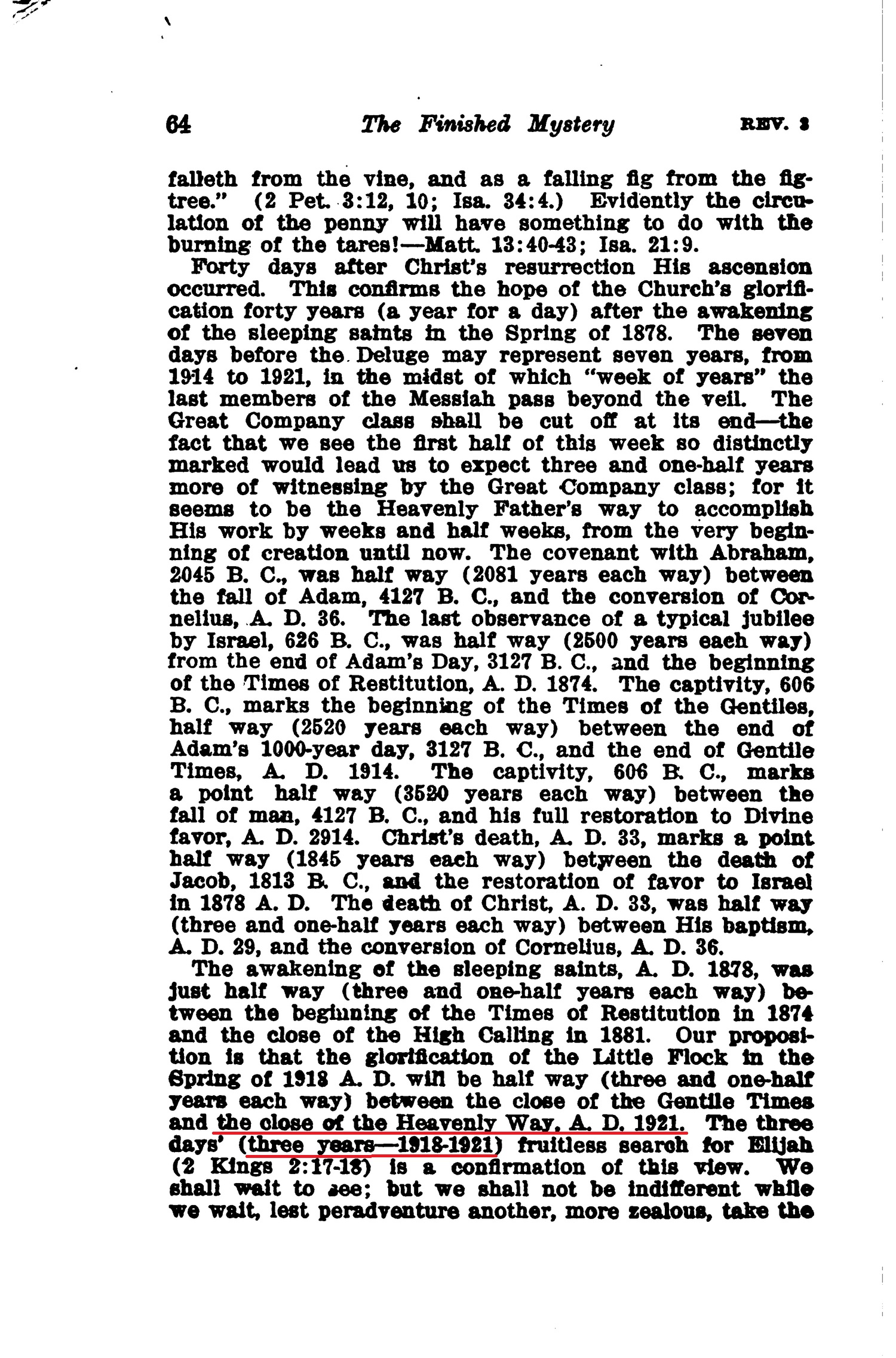 The close of the heavenly way, A.D. 1921 (Studies In the Scriptures - The Finished Mystery, page 64 + Cover