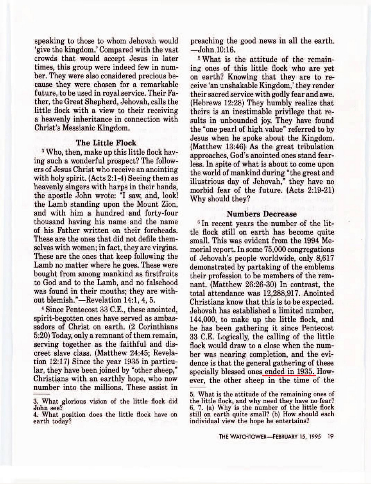 Source : 🇺🇸 Watchtower February 15 1995, page 19 + Cover |
