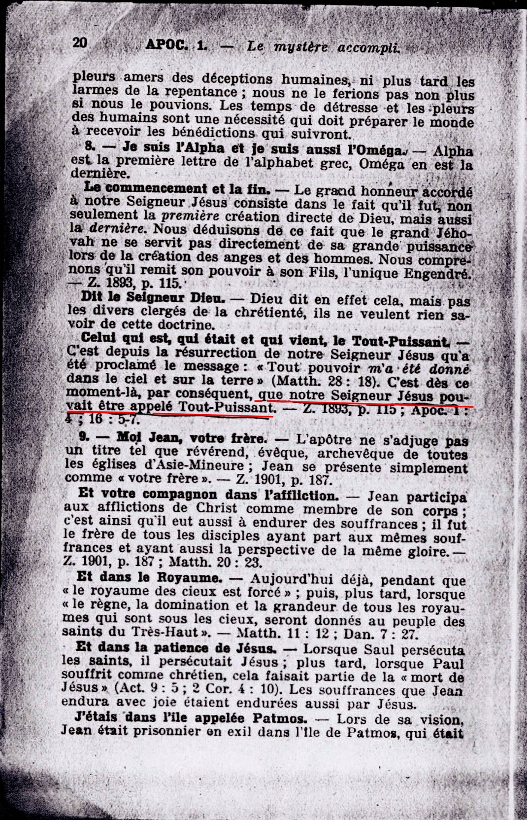 Si nous regardons dans l'Alphabetical appendix de cette "Diaglott", nous constatons que le qualificatif "Tout-Puissant" est attribué à Jésus en Apocalypse 1:8.