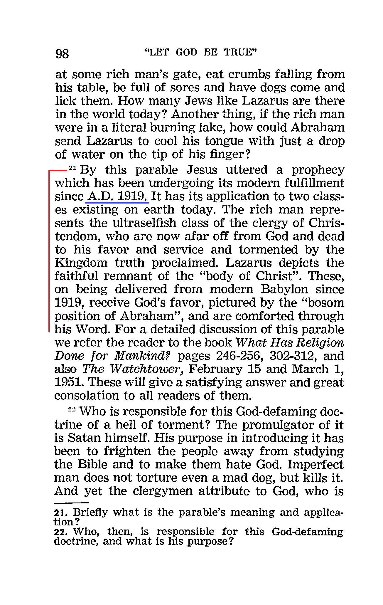 Source : 🇺🇸 1952 edition - Let God be true, page 98 + Cover |