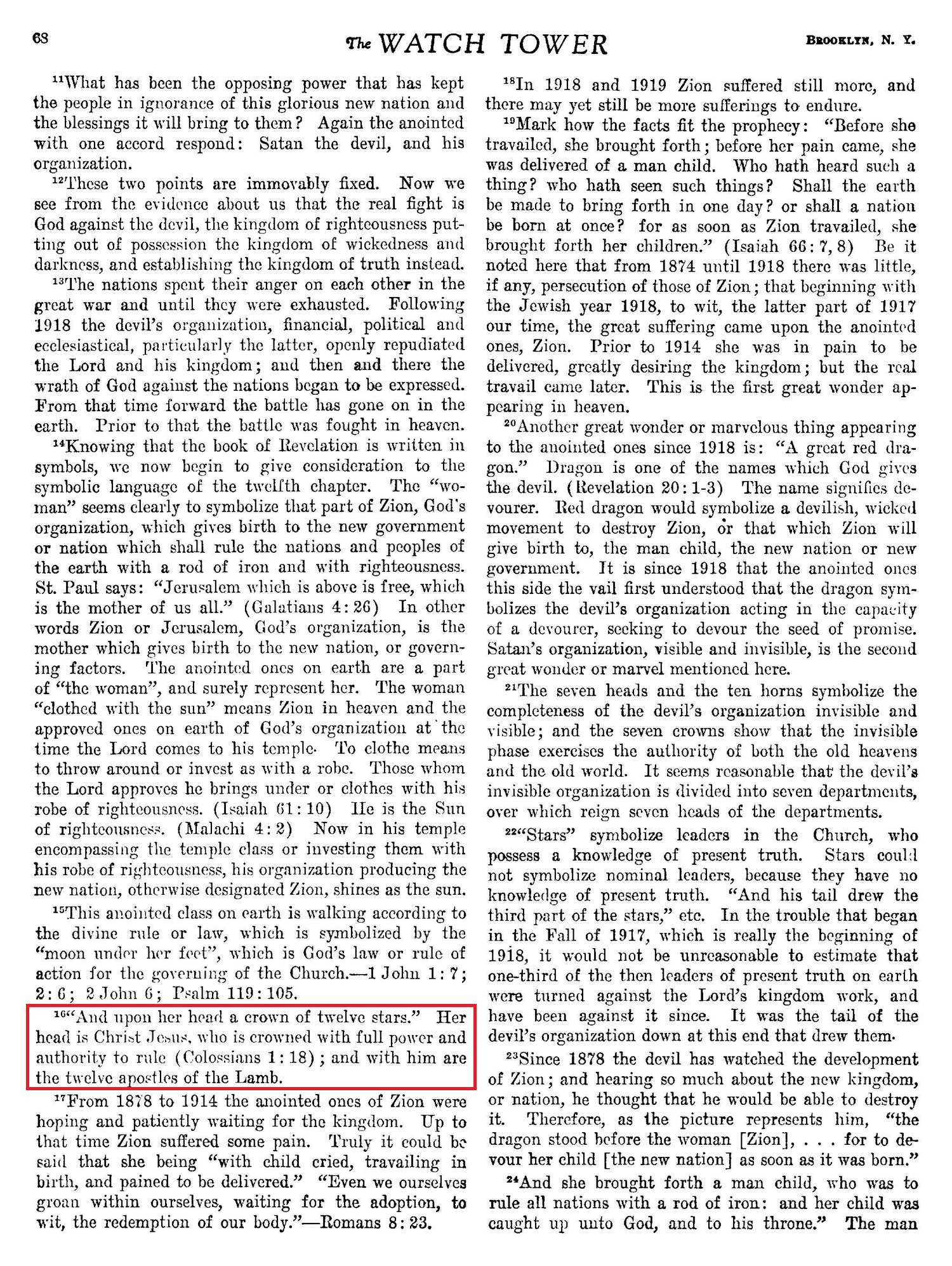 Source : 🇺🇸 The Watchtower, March 1, 1925, page 68 |