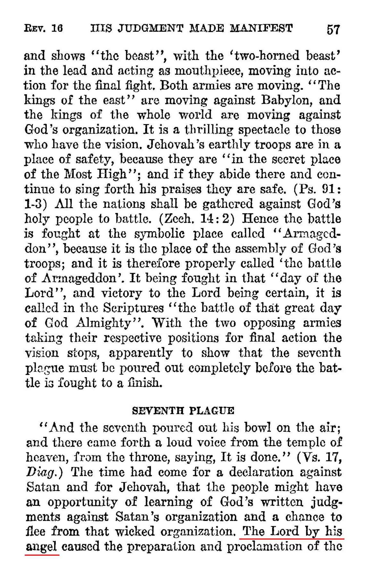 17:1. And there came one of the seven angels. — Volume VII, Studies in the Scriptures. Which had the seven vials. — An explanation of the plagues upon symbolic Babylon. And talked with me. — The John class, the Church in the flesh. Source : 🇺🇸 1917 - Studies in the Scriptures, Vol 7, The finished mystery, page 259 + Cover |