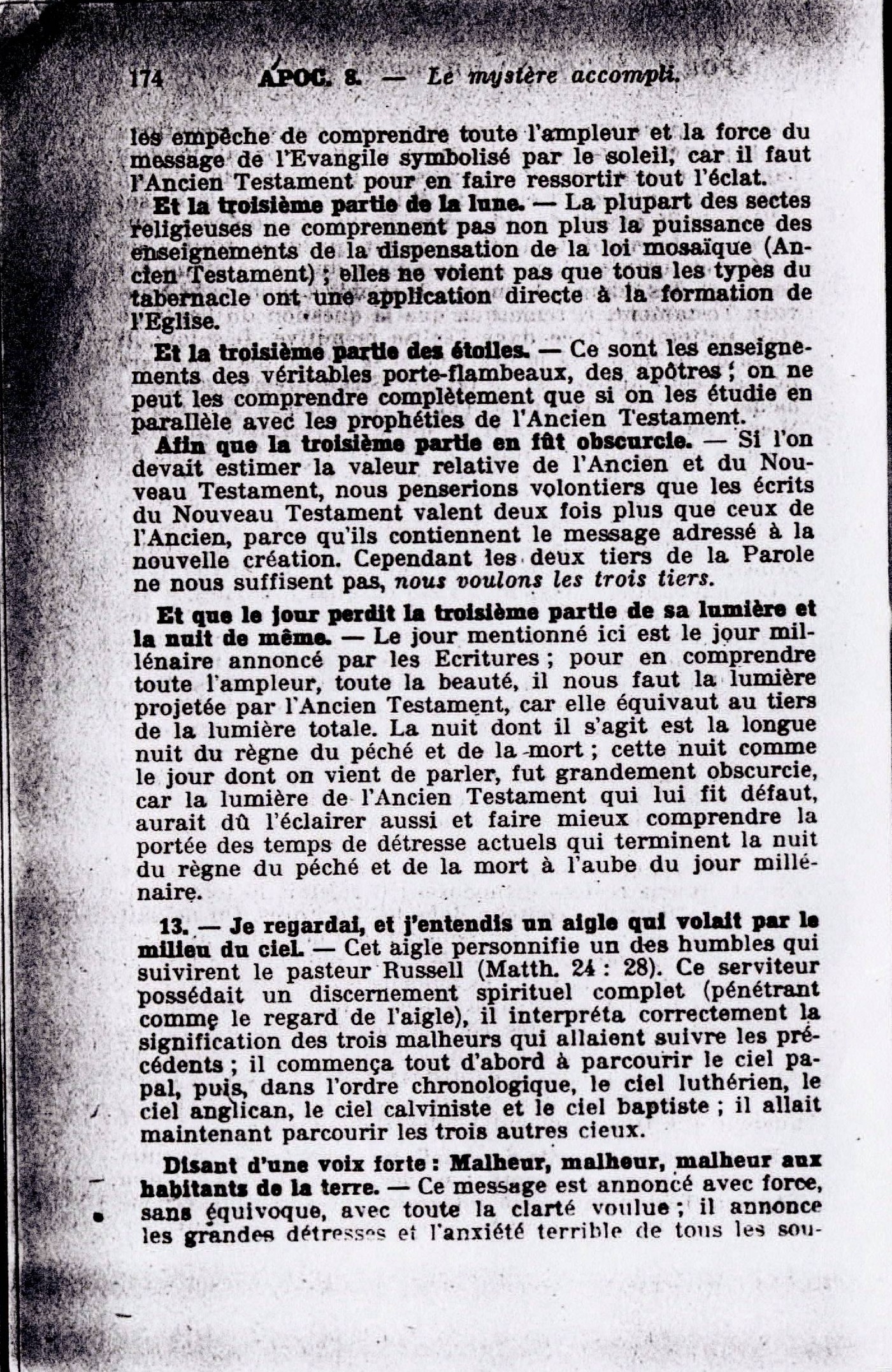 Et la troisième partie de la lune. - La plupart des sectes religieuses ne comprennent pas non plus la puissance des enseignements de la dispensation de la loi mosaïque (Ancien Testament); elles ne voient pas que tous les types du tabernacle ont une application à la formation de l'Eglise. Source : 🇫🇷 1917 - Le Mystère Accompli, page 173, page 174 + Cover |