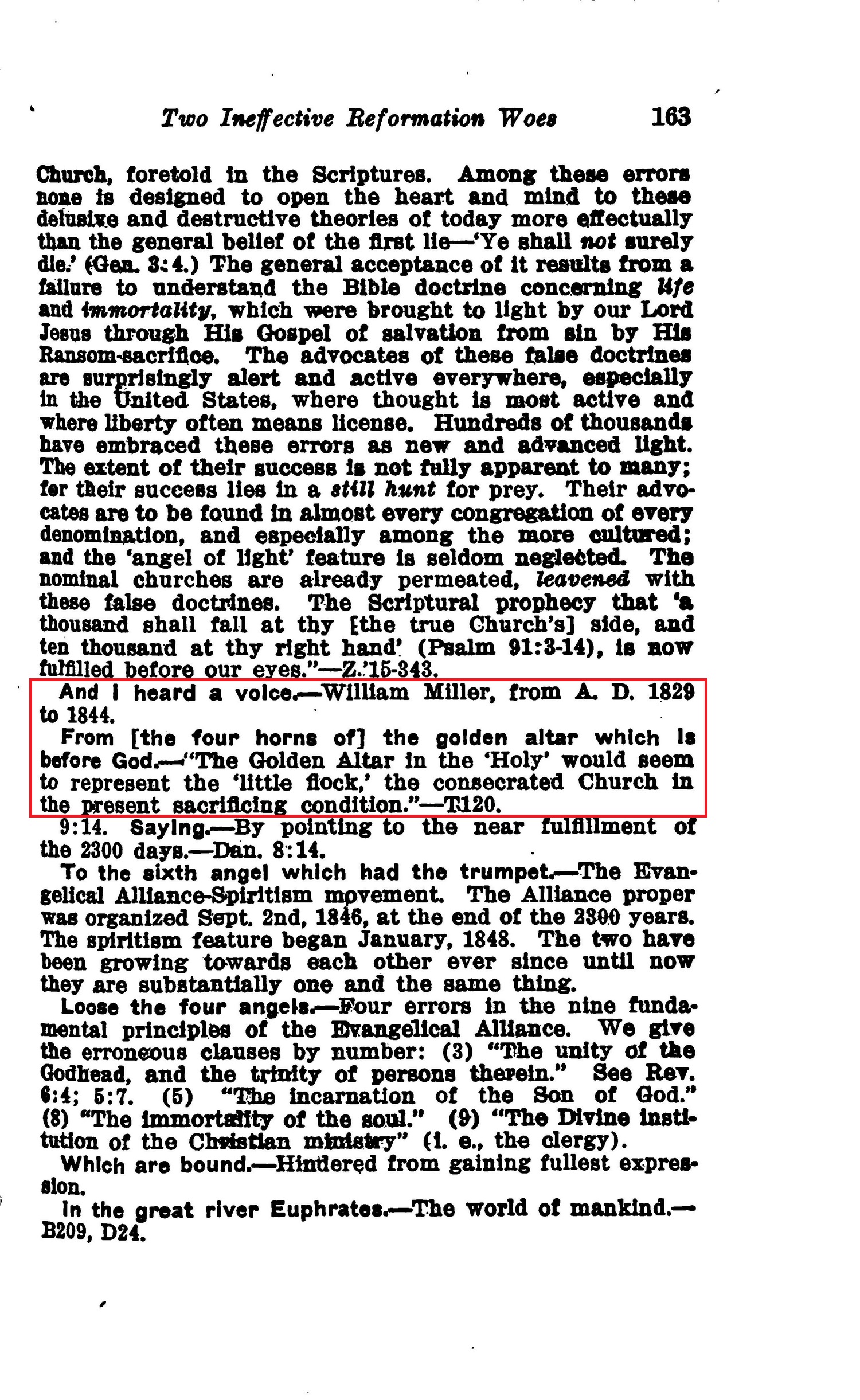 And I heard a voice. — William Miller, from A. D. 1829 to 1844. From [the four horns of] the golden altar which Is before God. —."The Golden Altar In the 'Holy' would seem to represent the 'little flock,' the consecrated Church in the present sacrificing condition."—T120. Source : 🇺🇸 1917 - Studies in the Scriptures, Vol 7, The finished mystery, page 163 + Cover |