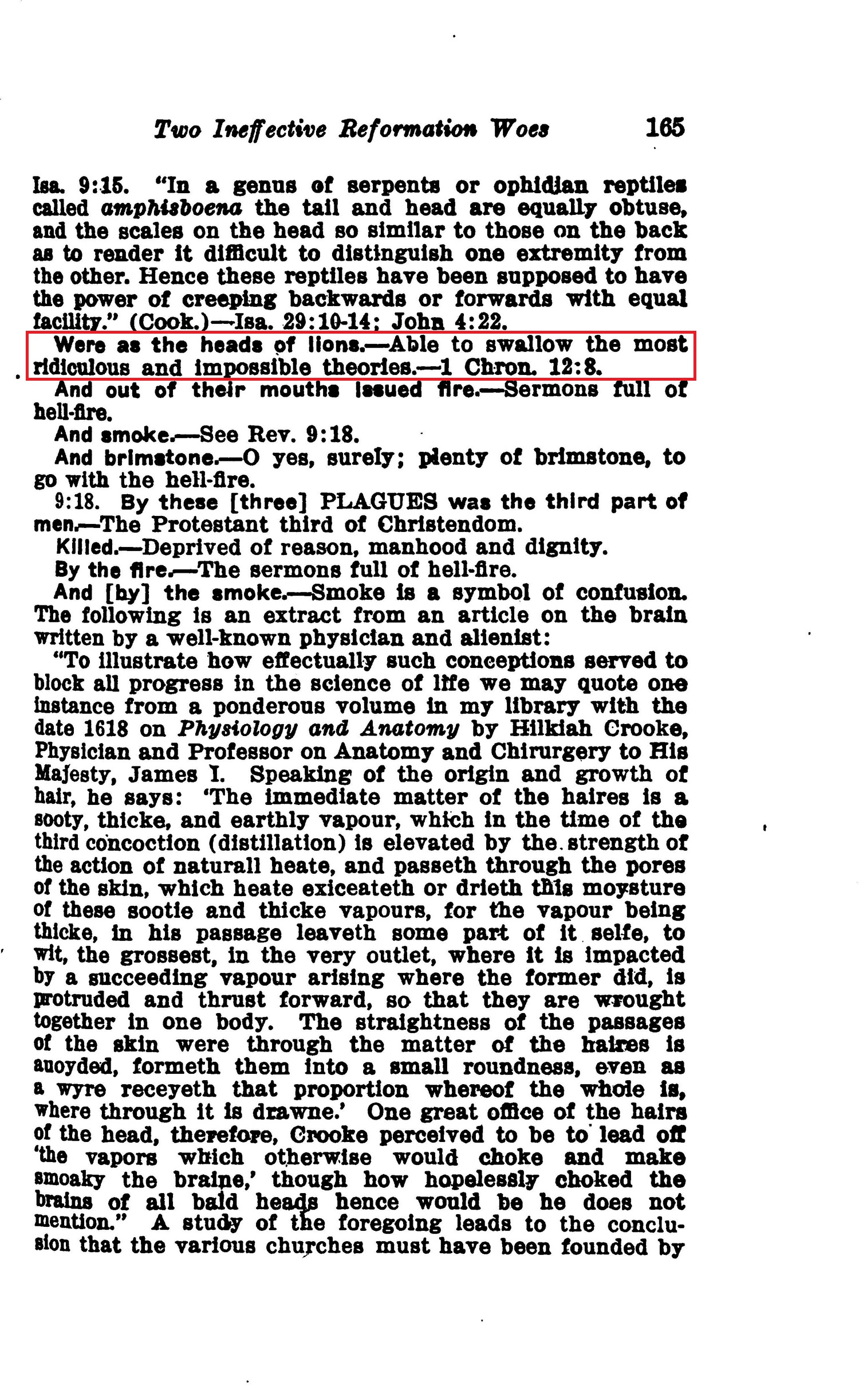 Were as the heads of lions. - Able to swallow the most ridiculous and impossible theories. - 1 Chron. 12:8. Source : 🇺🇸 1917 - Studies in the Scriptures, Vol 7, The finished mystery, page 165 + Cover |