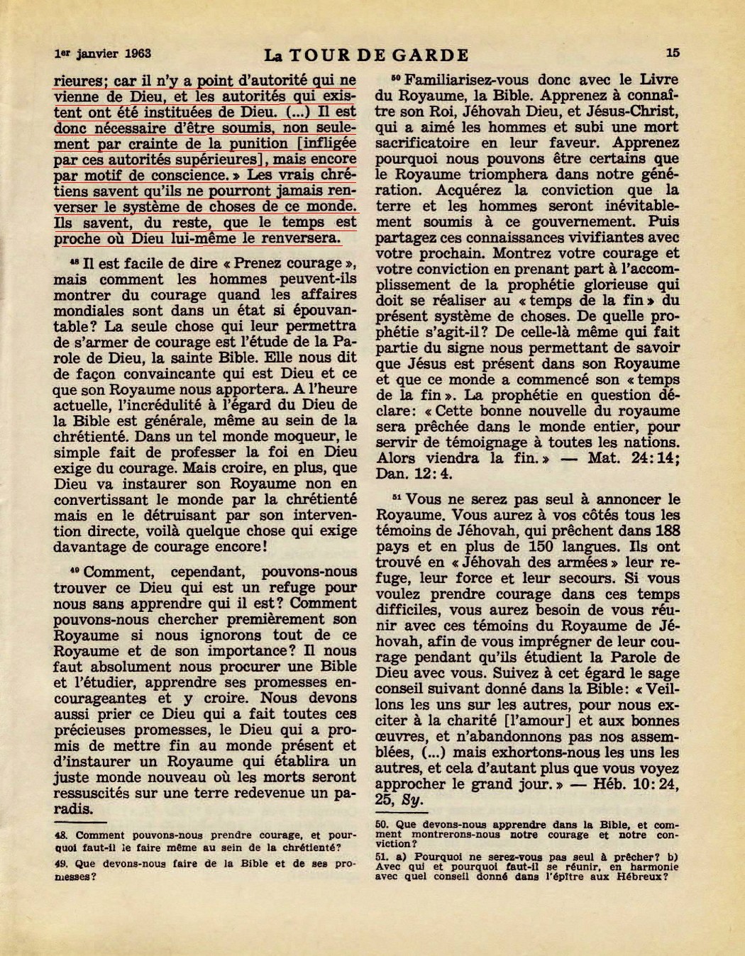 Source : 🇫🇷 La Tour de Garde, 1 Janvier 1963, page 14, page 15 + Cover |