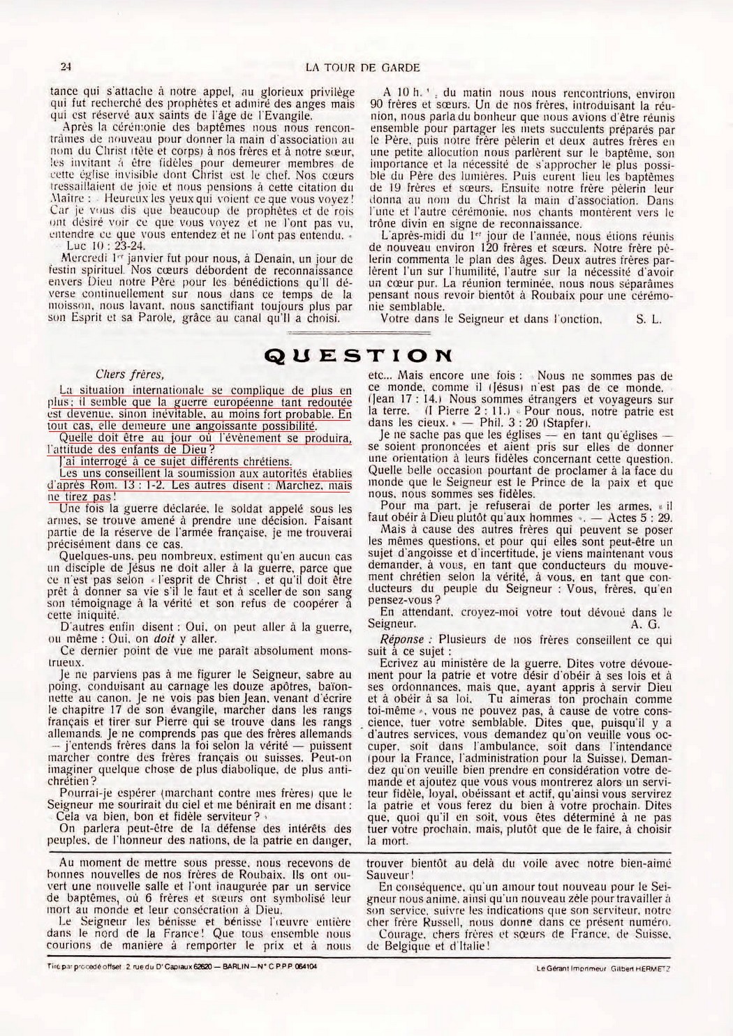 Source : 🇫🇷 La Tour de Garde, 15 Fev 1950, page 52 + Cover |
