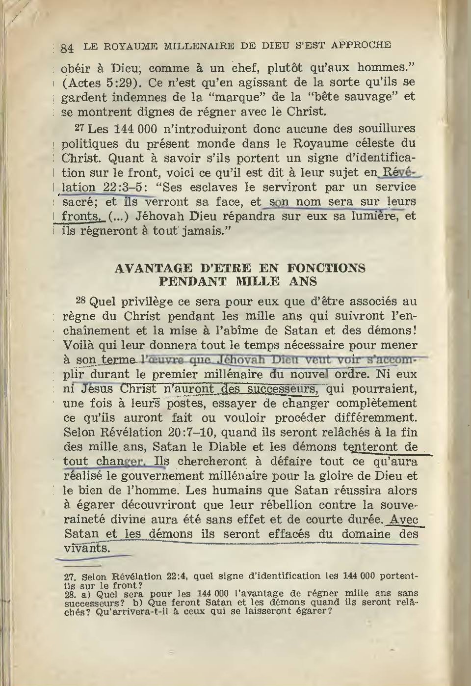 Source : 🇫🇷 Le Royaume millenaire de Dieu s'est approché, 1975, page 83, page 84 + Cover |