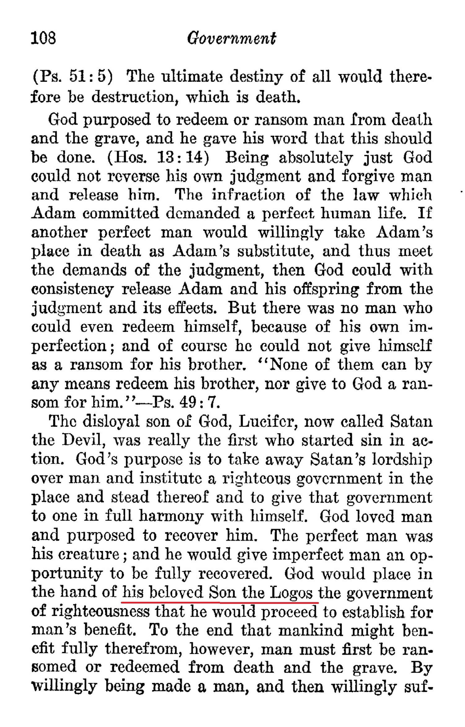 God would place in the hand of his beloved Son the Logos the government of righteousness that he would proceed to establish for man’s benefit. [...] His beloved Son was the great delight of Jehovah. (Prov. 8:30)