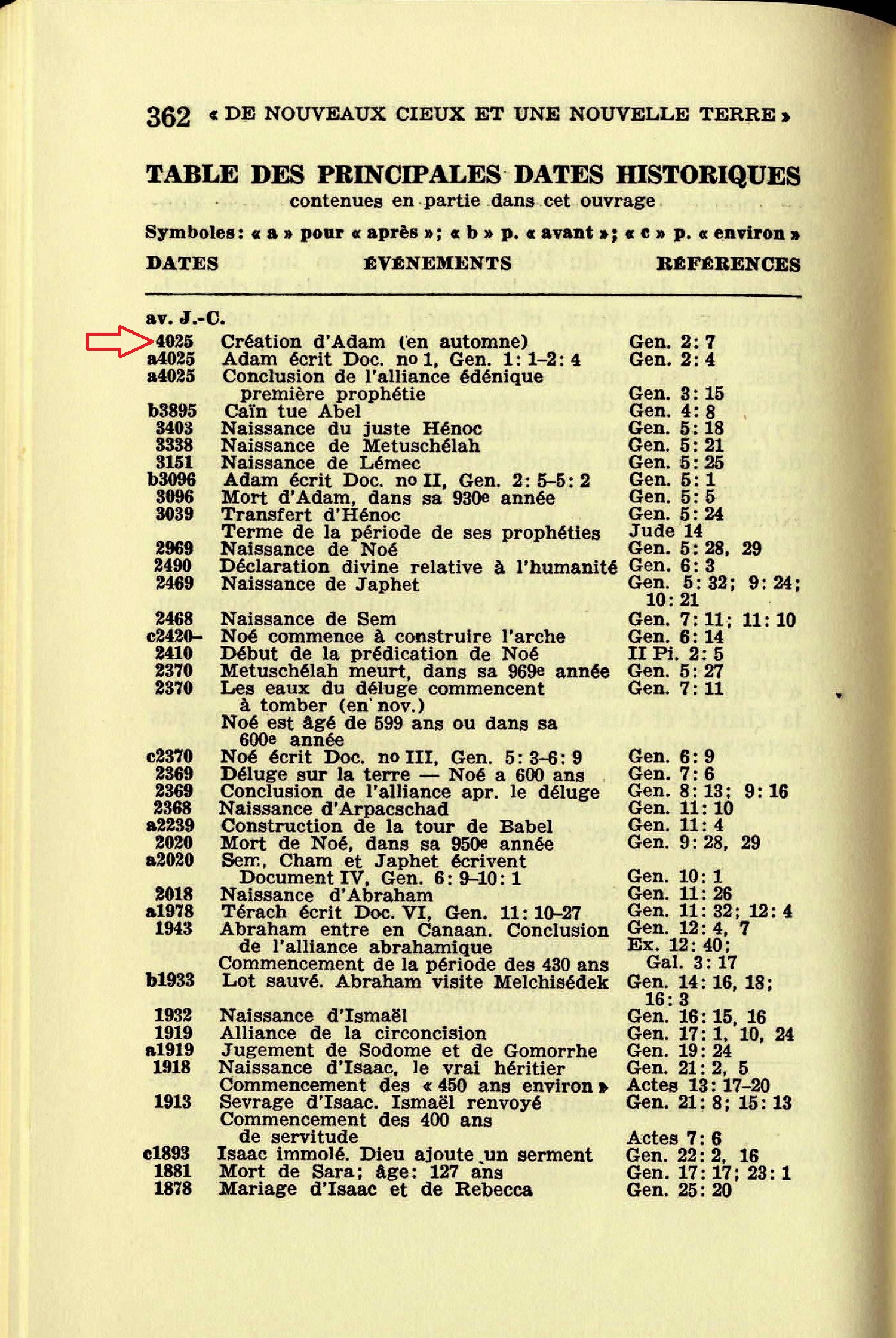 Or, cette chronologie indépendante, déjà publiée*, situe la création de l'homme en 4026 av. notre ère. [...] Date av. n.è. 4026 : Création of Adam (début de l'automne)