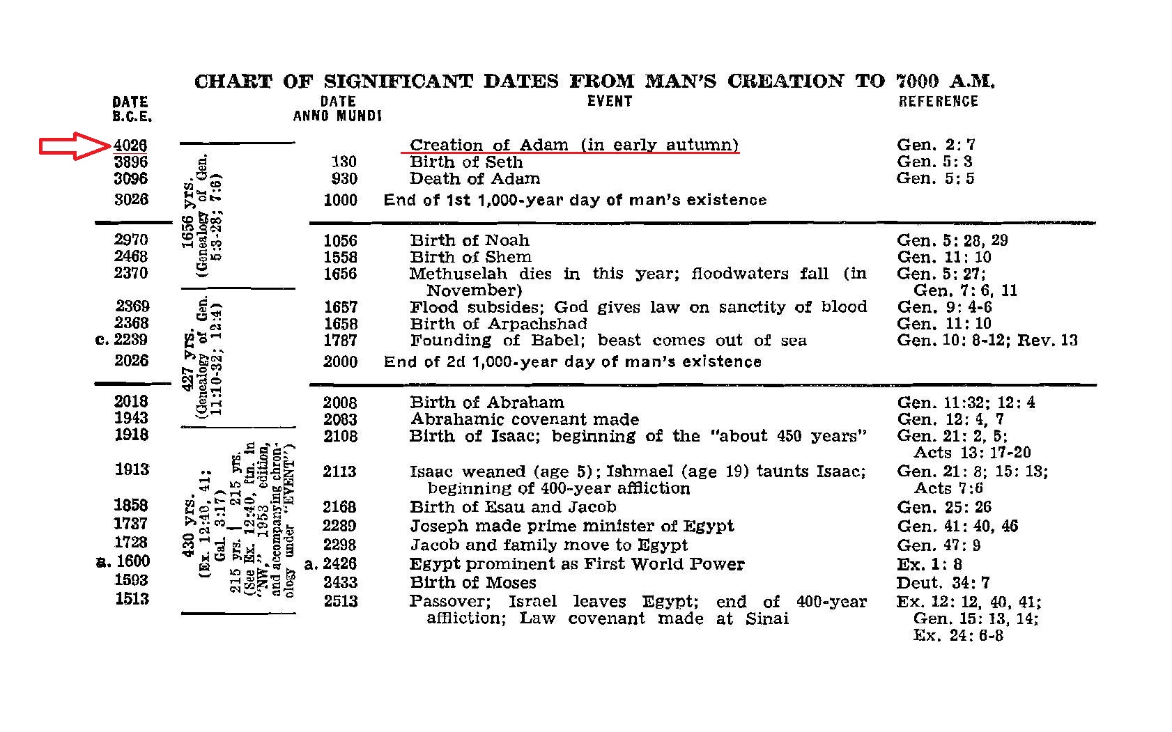 This fact affects the chronology as a whole and pulls man's creation 2 years closer to A.D. I and gives it the date 4026 B.C., not 4028 B.C