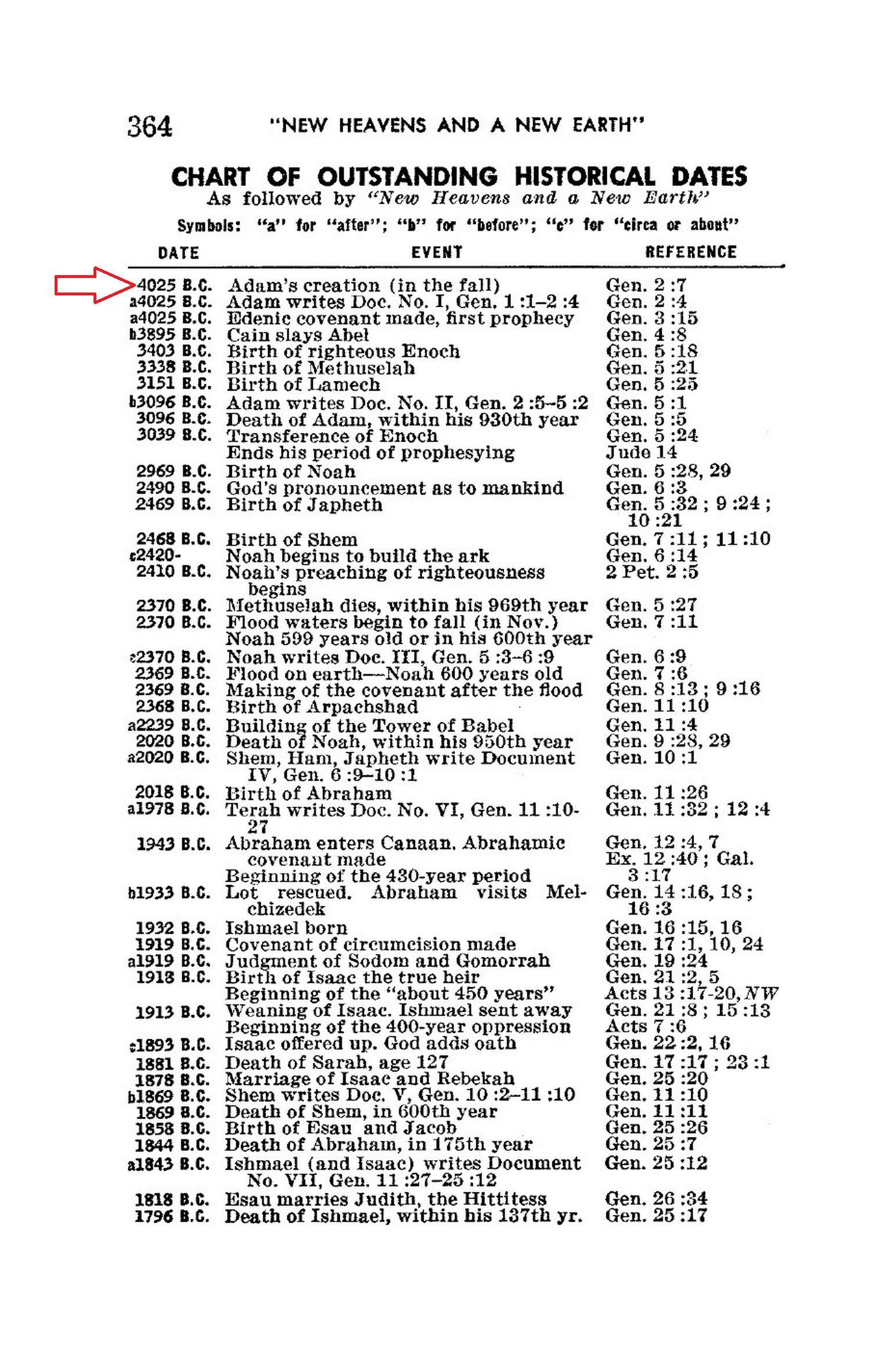 4025 B.C. Adam's creation (in the fall) Gen. 2:7 Source : 🇺🇸 The Watchtower, April 1 1951, page 221 + Cover |