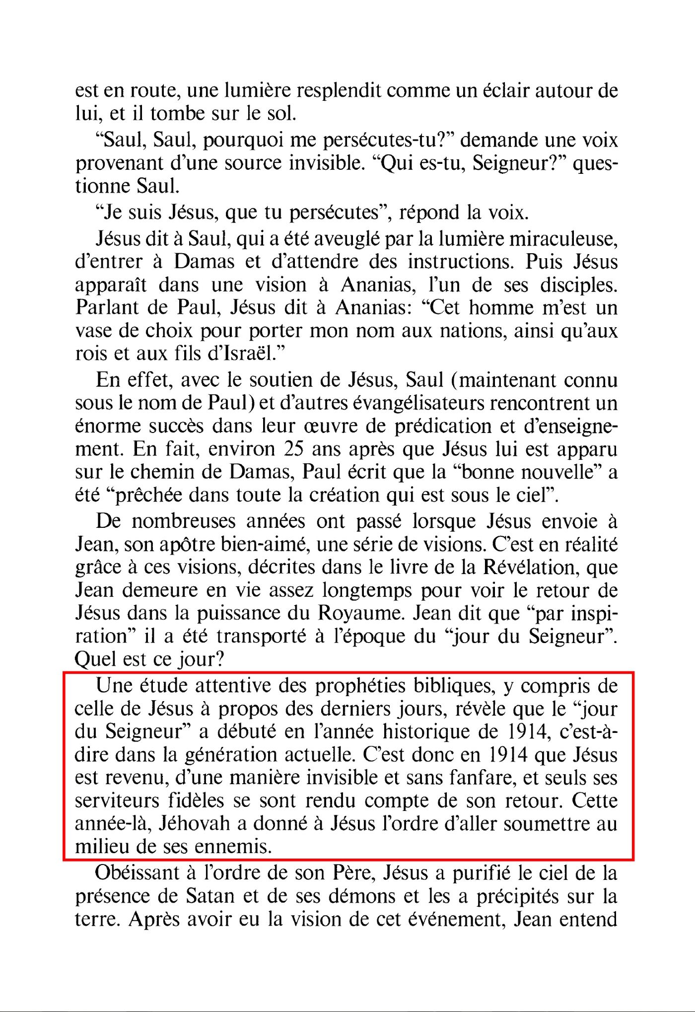 🇫🇷 Traduction : La preuve scripturaire est que la seconde présence du Seigneur Jésus-Christ est invisible et a commencé environ à l'année mille huit cent soixante-dix-huit (après Jésus-Christ)