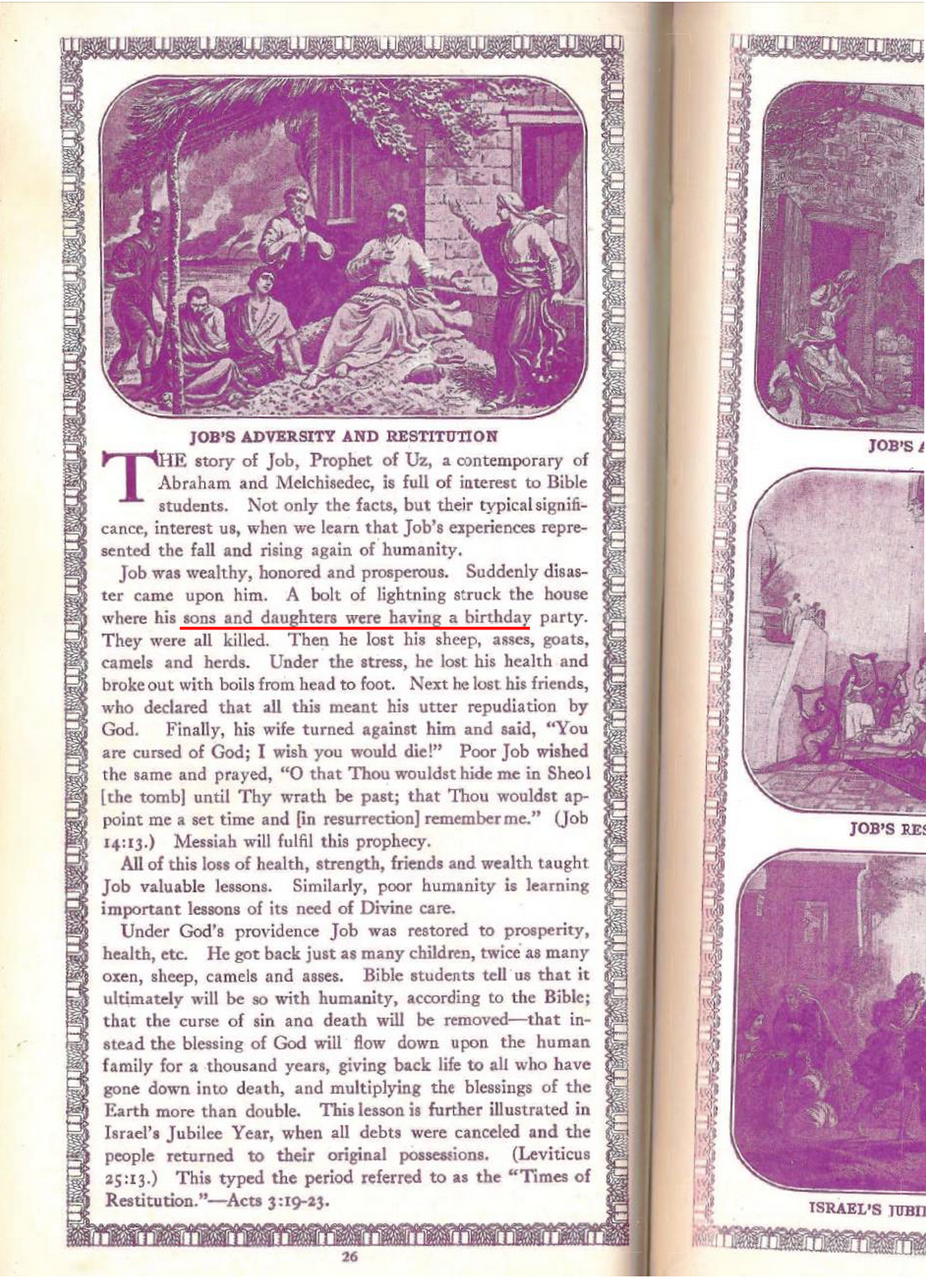 Job was wealthy, honored and prosperous. Suddently disaster came upon him. A bolt of lightning struck the house where his sons and daughters were having a birthday party.