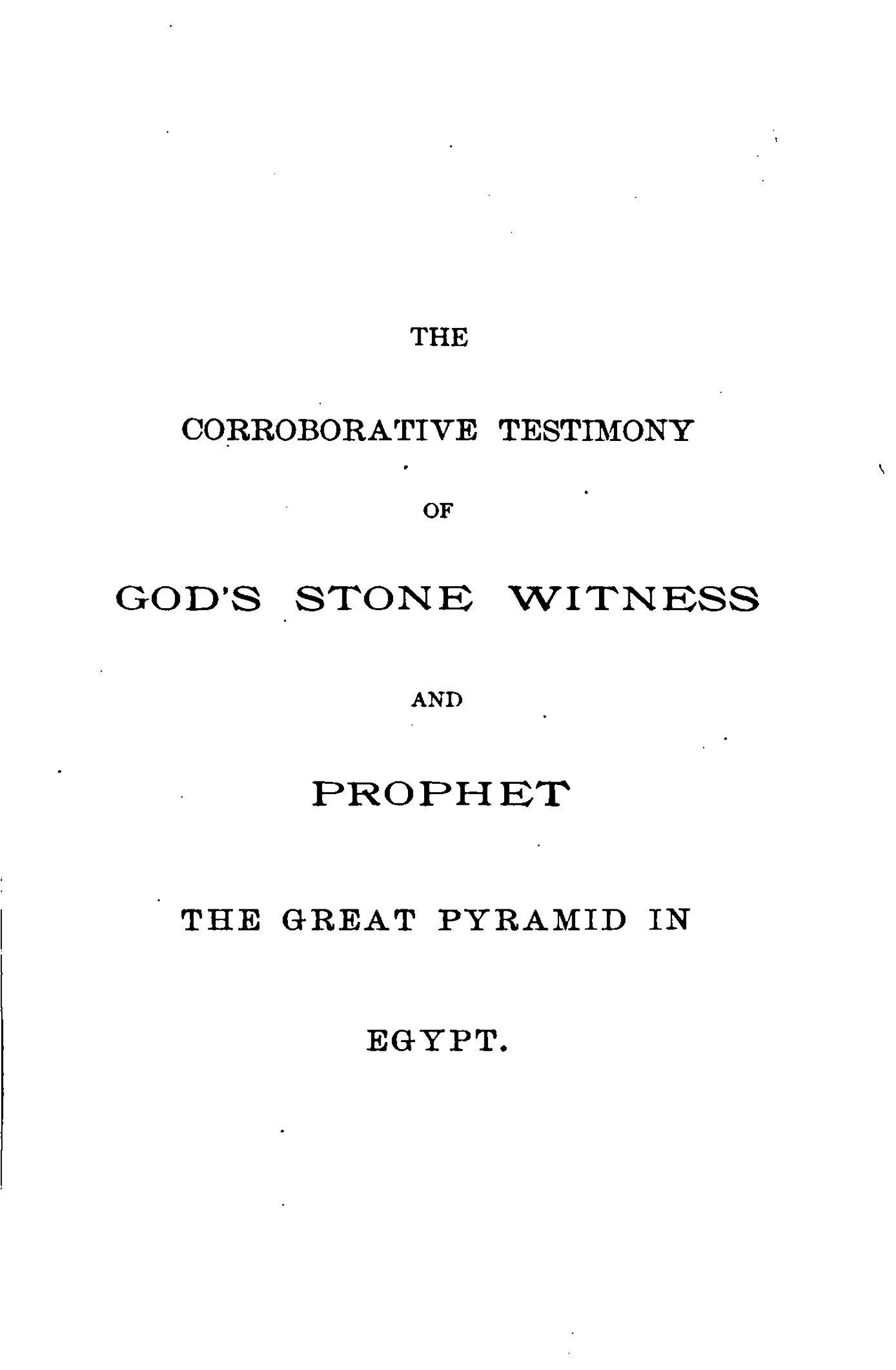 THE CORROBORATIVE TESTIMONY OF GOD'S STONE WITNESS AND PROPHET THE GREAT PYRAMID IN EGYPT.