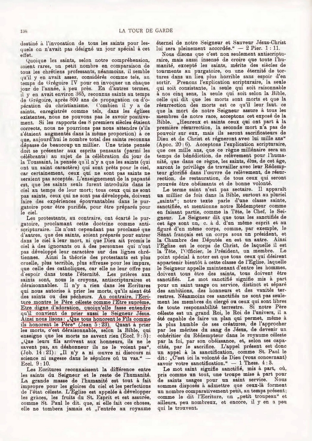 Au contraire, l'Ecriture montre le Père céleste comme l'Etre suprême, Etre digne d'adoration, quoiqu'elle fasse entendre qu'il convient de prier aussi le Seigneur Jésus. Ainsi nous lisons:"Que tous honorent le Fils comme ils honorent le Père" (Jean 5:23)