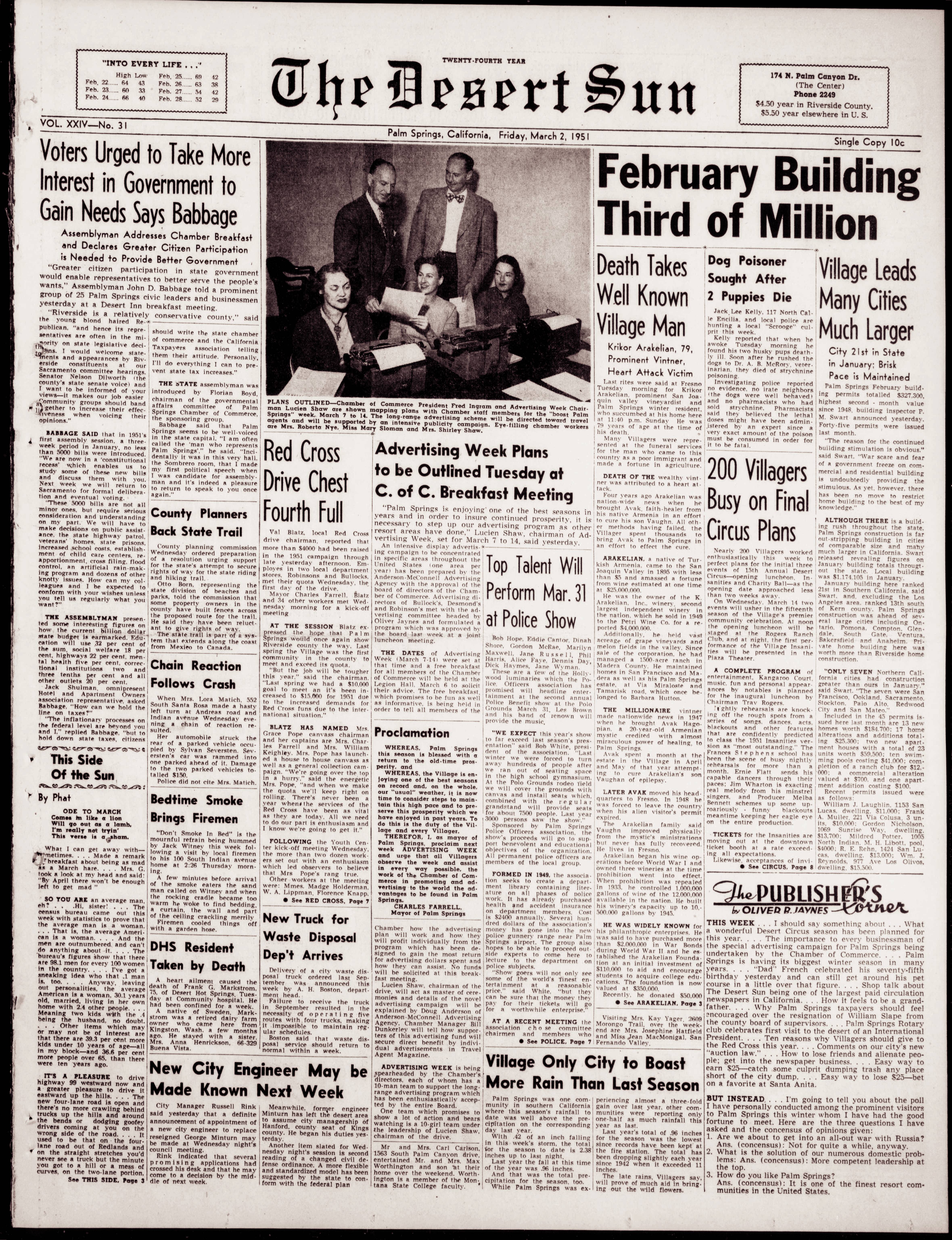 La rencontre entre Krikor Arakélian et Avak Hagopian est mentionnée dans The Desert Sun (Volume XXIV, Number 31, 2 mars 1951). L’article revient d’abord sur les dernières prières prononcées à Fresno (mardi matin) pour Krikor Arakélian, puis rappelle qu’ils s’étaient rencontrés en 1947 : Hagopian, alors âgé d’environ 20 ans, aurait séjourné environ un mois sur la propriété familiale (avril–mai) afin de tenter de soulager Vaughan Arakélian, atteint notamment d’épilepsie.