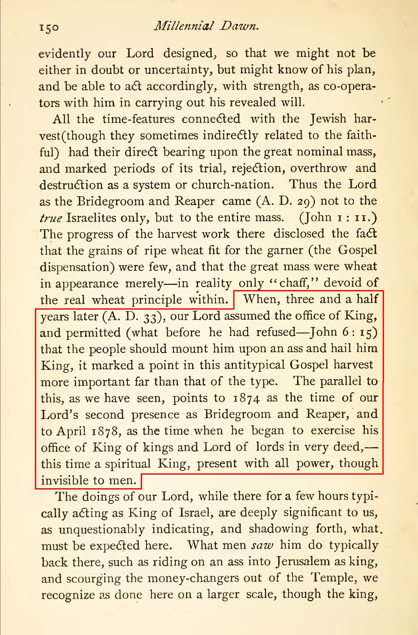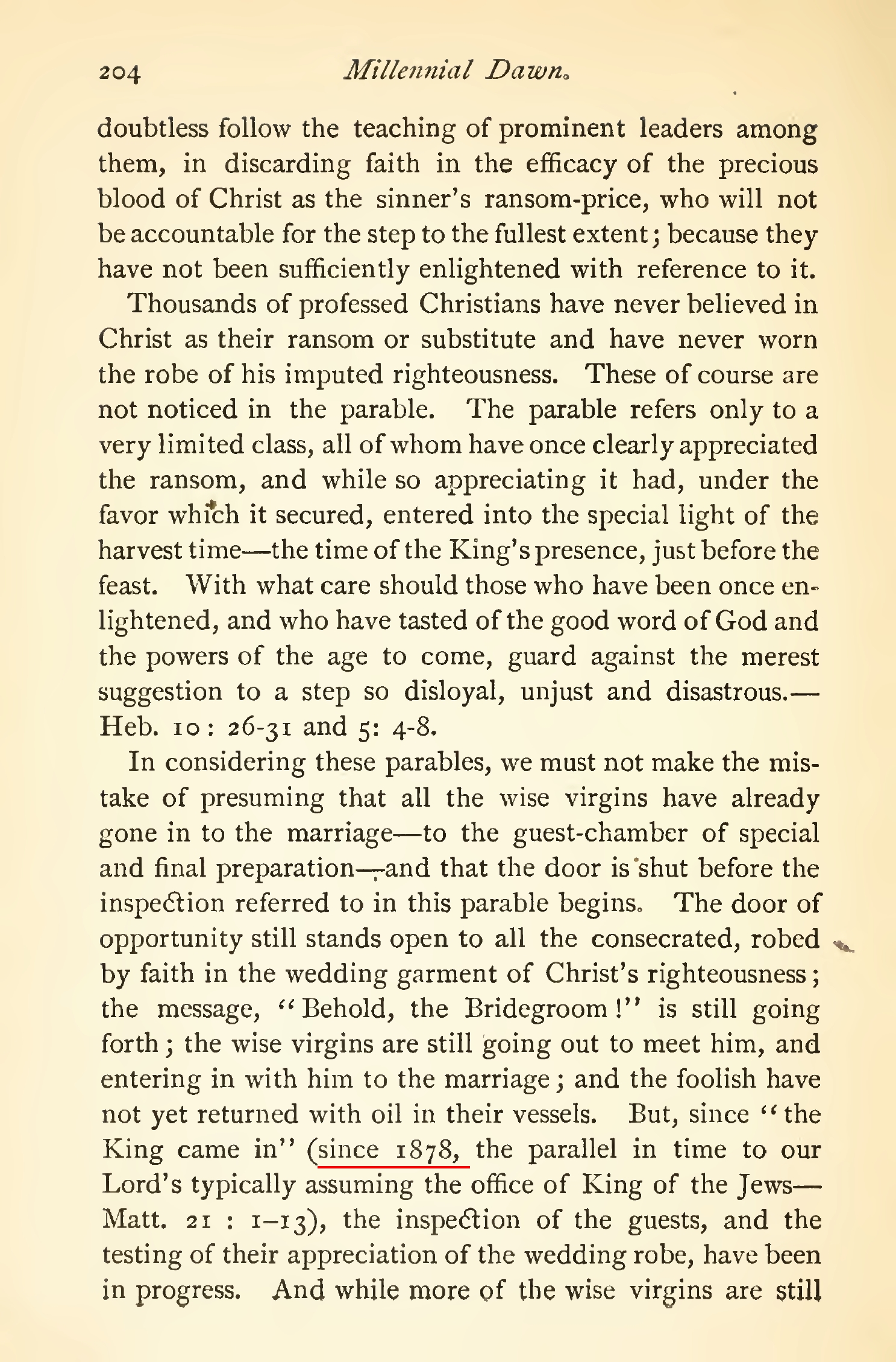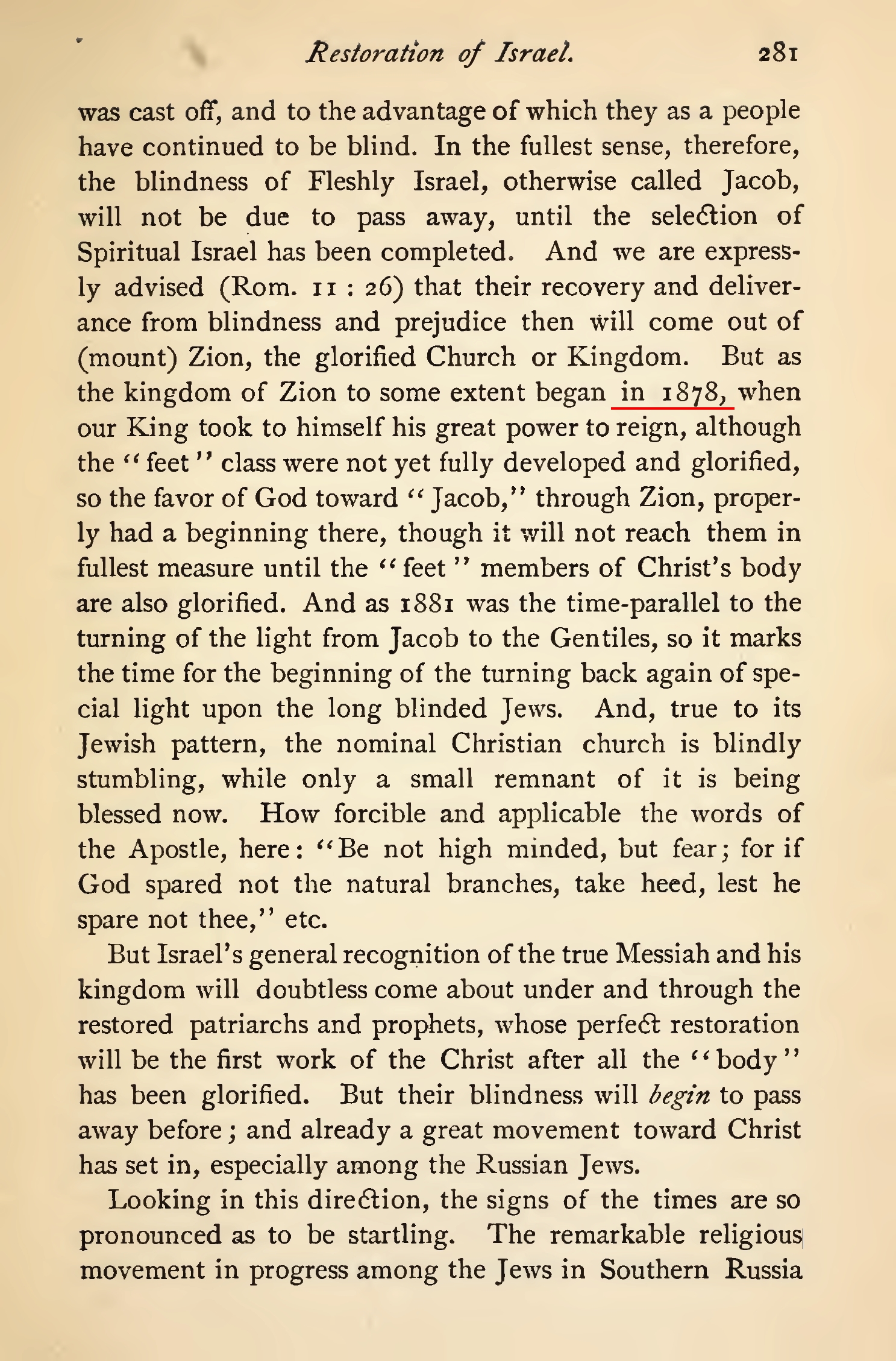 An approximate return of Jesus: 1878