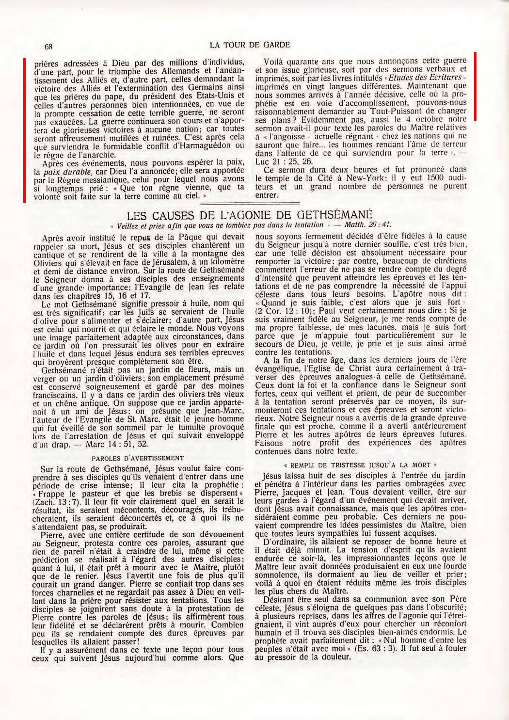 6) Le grand "temps de détresse" prédit par Jésus atteindra son apogée et sa fin en 1914 :