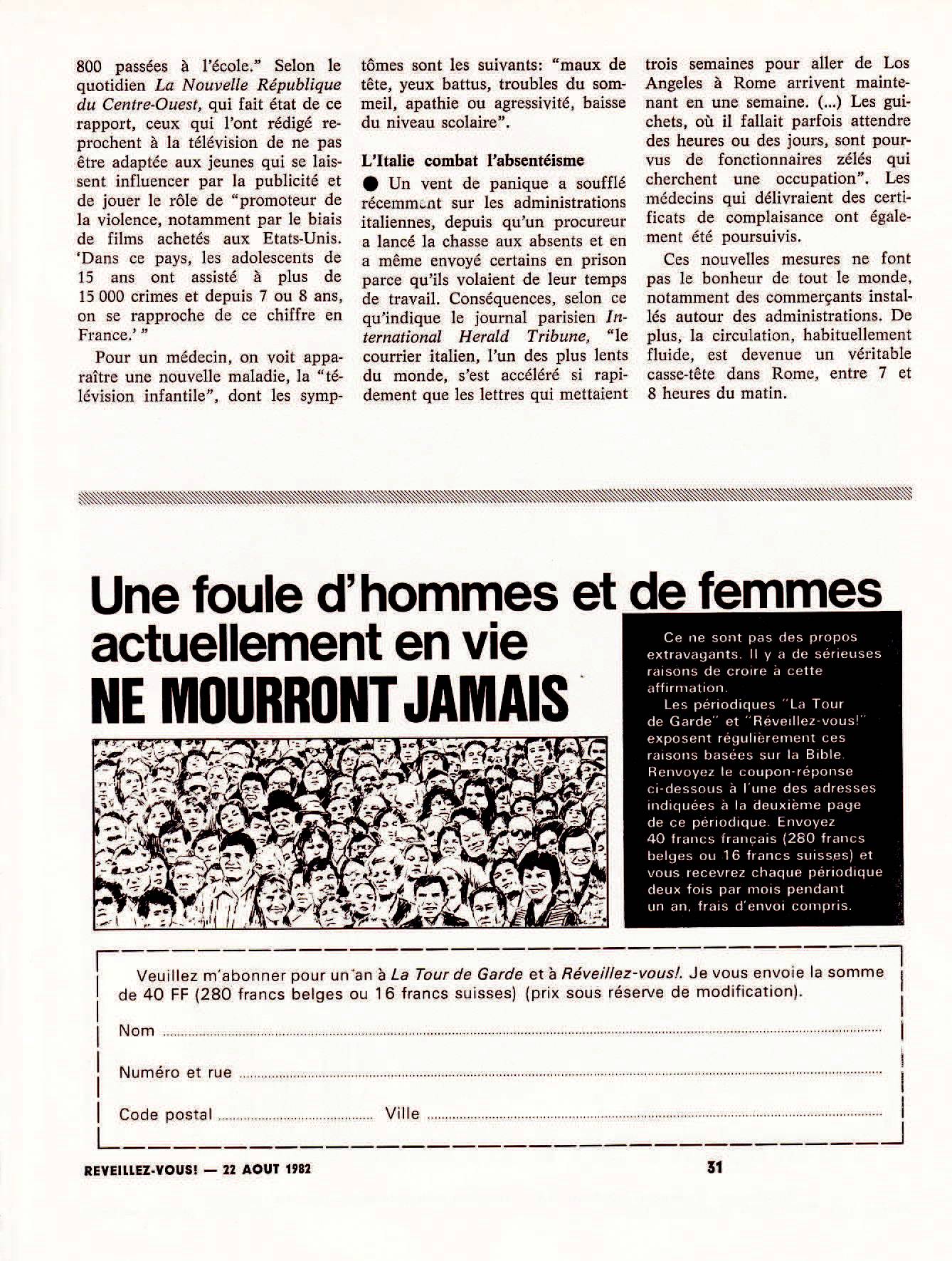 « Une foule d'hommes et de femmes actuellement en vie ne mourront jamais »