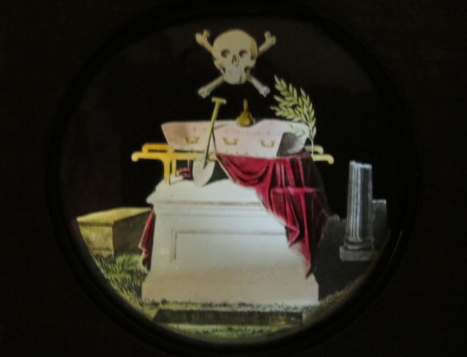 Voici un autre exemple assez parlant, où l’on peut voir le pilier brisé et la croix et la couronne sur la tombe d’un franc-maçon