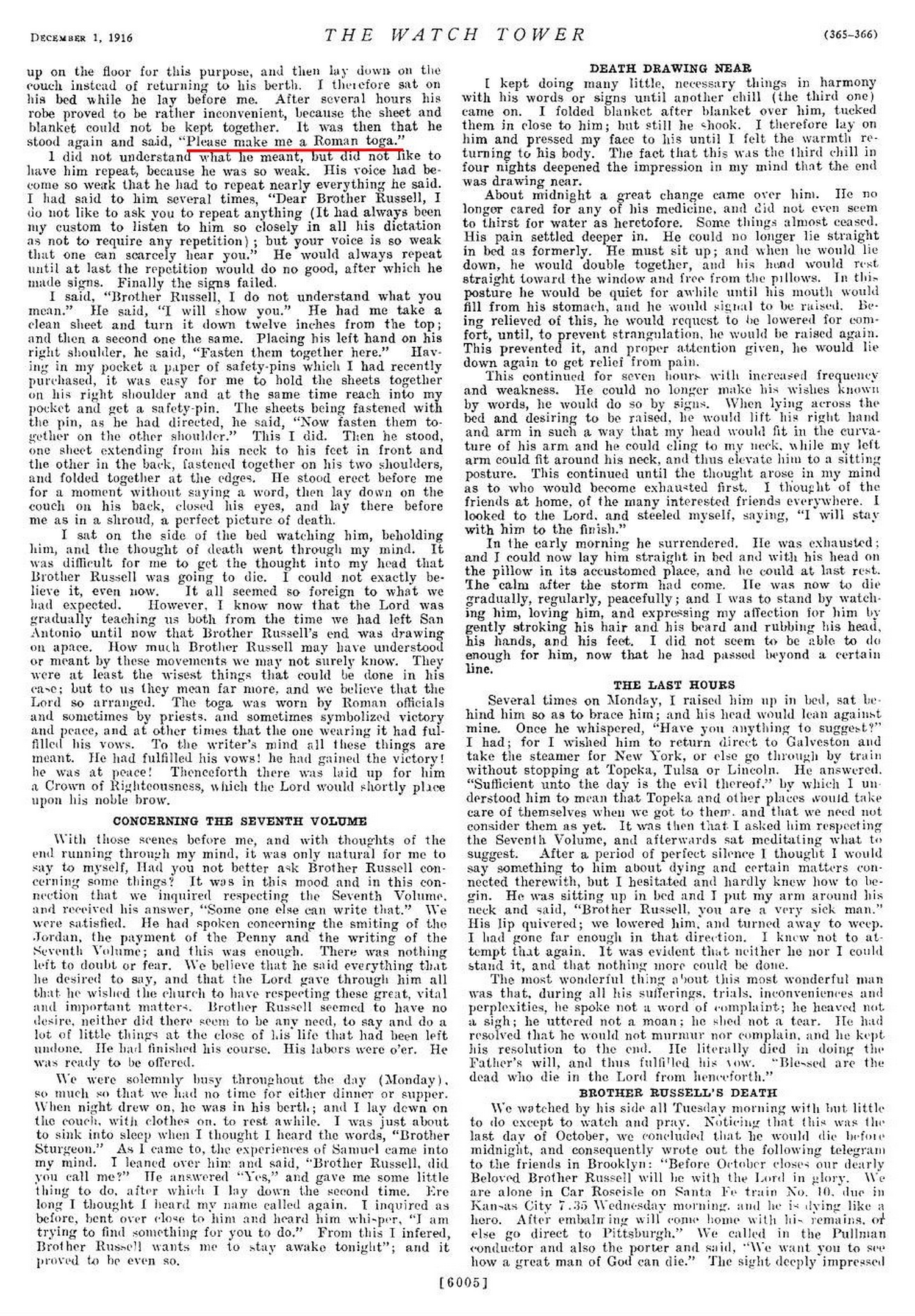 En effet, le magazine « Watchtower » du 1er décembre 1916 nous affirme que les derniers mots de Charles Russell étaient :