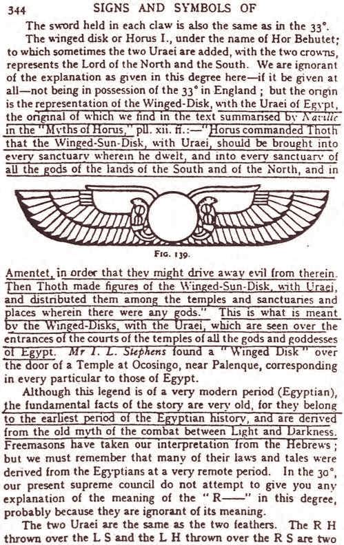 La signification du Winged sun disk tire son origine de l’Égypte ancienne. Le dieu Soleil actuellement adoré par les francs-maçons de haut degré est le dieu Soleil connu dans plusieurs cultures et sous différents noms.