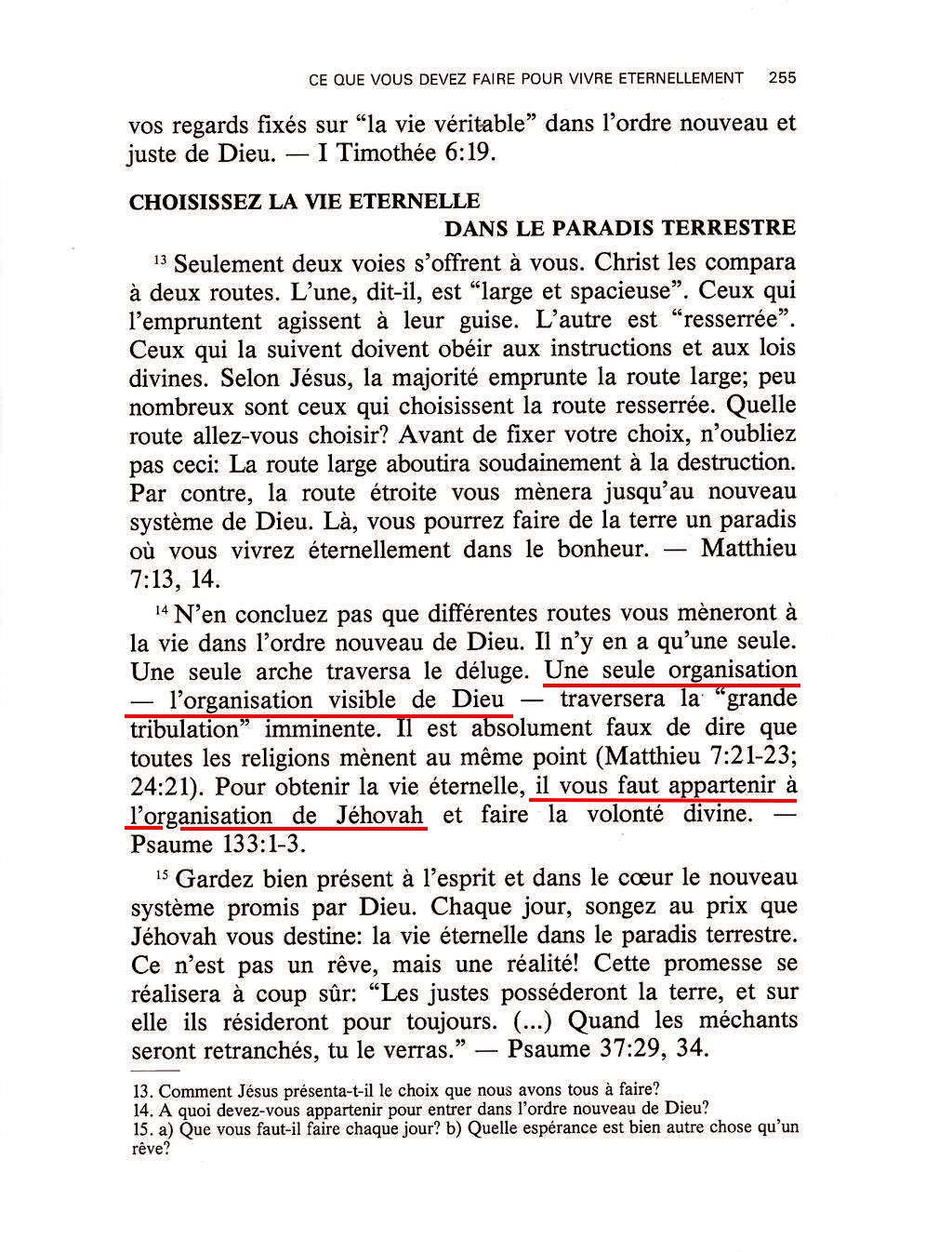 - Pour obtenir la vie éternelle, il vous faut appartenir à l’organisation de Jéhovah.