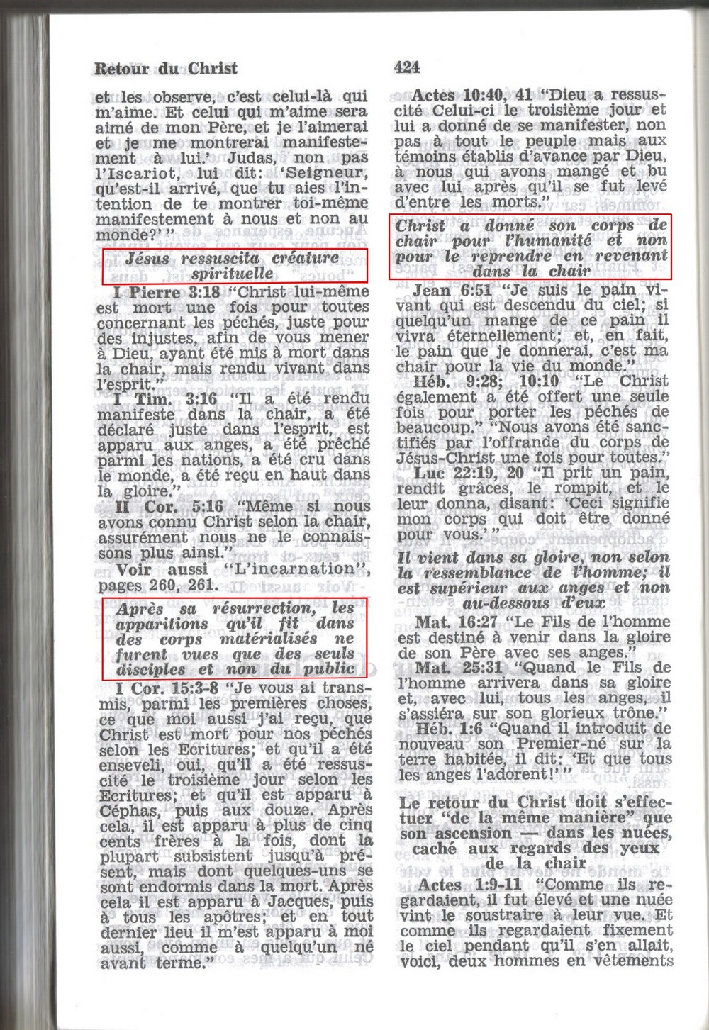 Comme nous venons de le lire, l’organisation des témoins de Jéhovah enseigne que « Christ a donné son corps de chair pour l’humanité et non pour le reprendre en revenant dans la chair ». Cependant, si les témoins de Jéhovah enseignent que Jésus est ressuscité « en esprit » et non « en chair et en os », il est frappant de voir que Jésus affirme l’inverse :