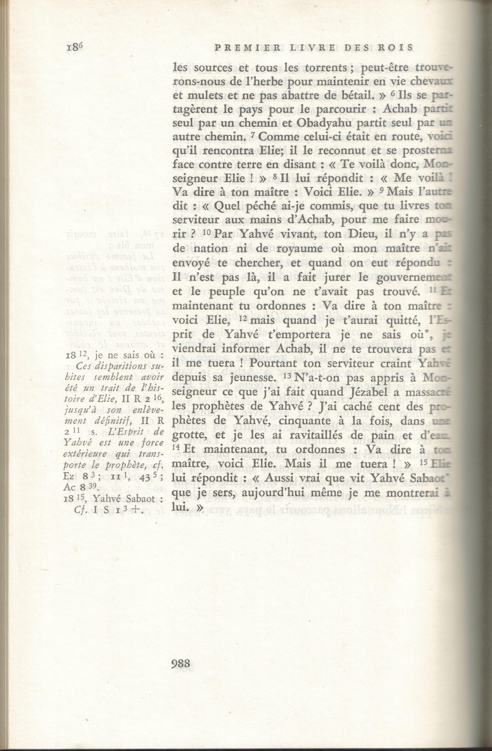 La Sainte Bible Jérusalem, 1956, Tome I, page 988 (1 Rois 18:12) + Cover