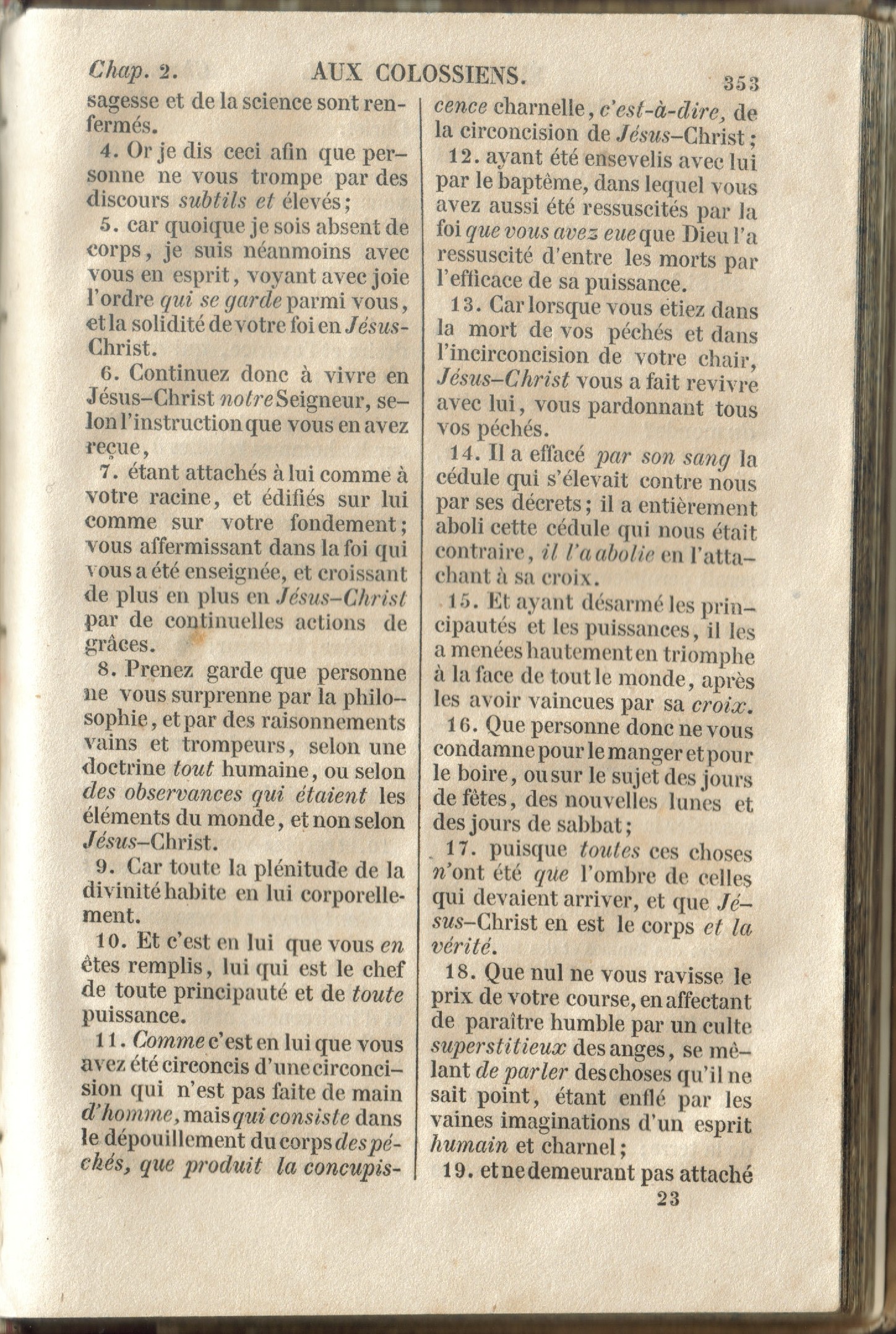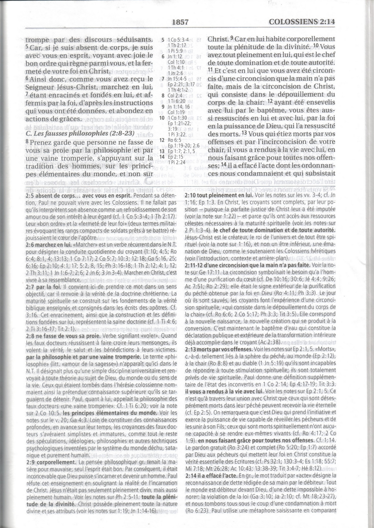- Car c'est en lui que réside réellement toute la plénitude de la divinité. (Traduction Edmond Stapfer 1889)