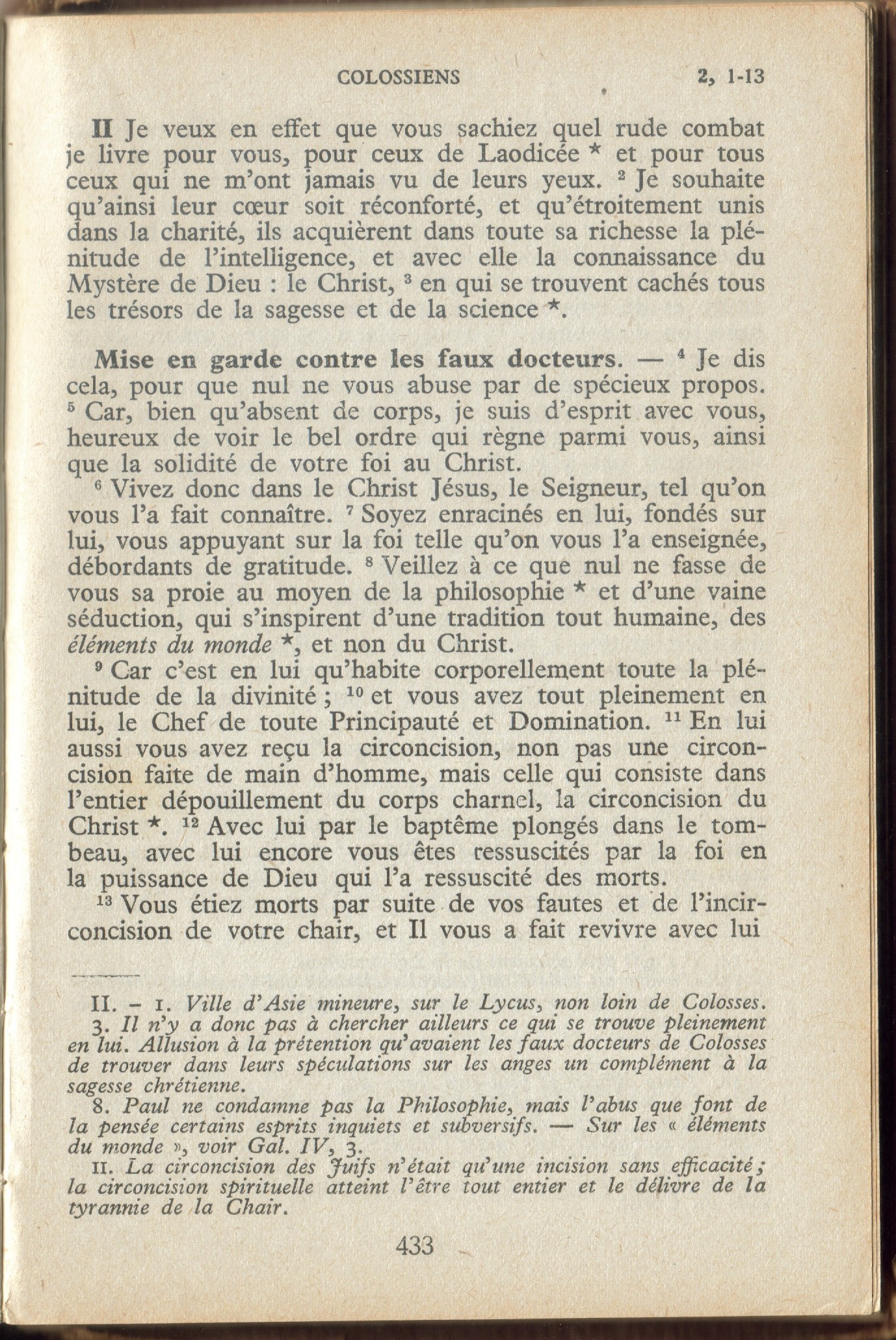 - Car en lui habite corporellement toute la plénitude de la divinité, (Bible du Club Français du Livre 1956 + # + #)