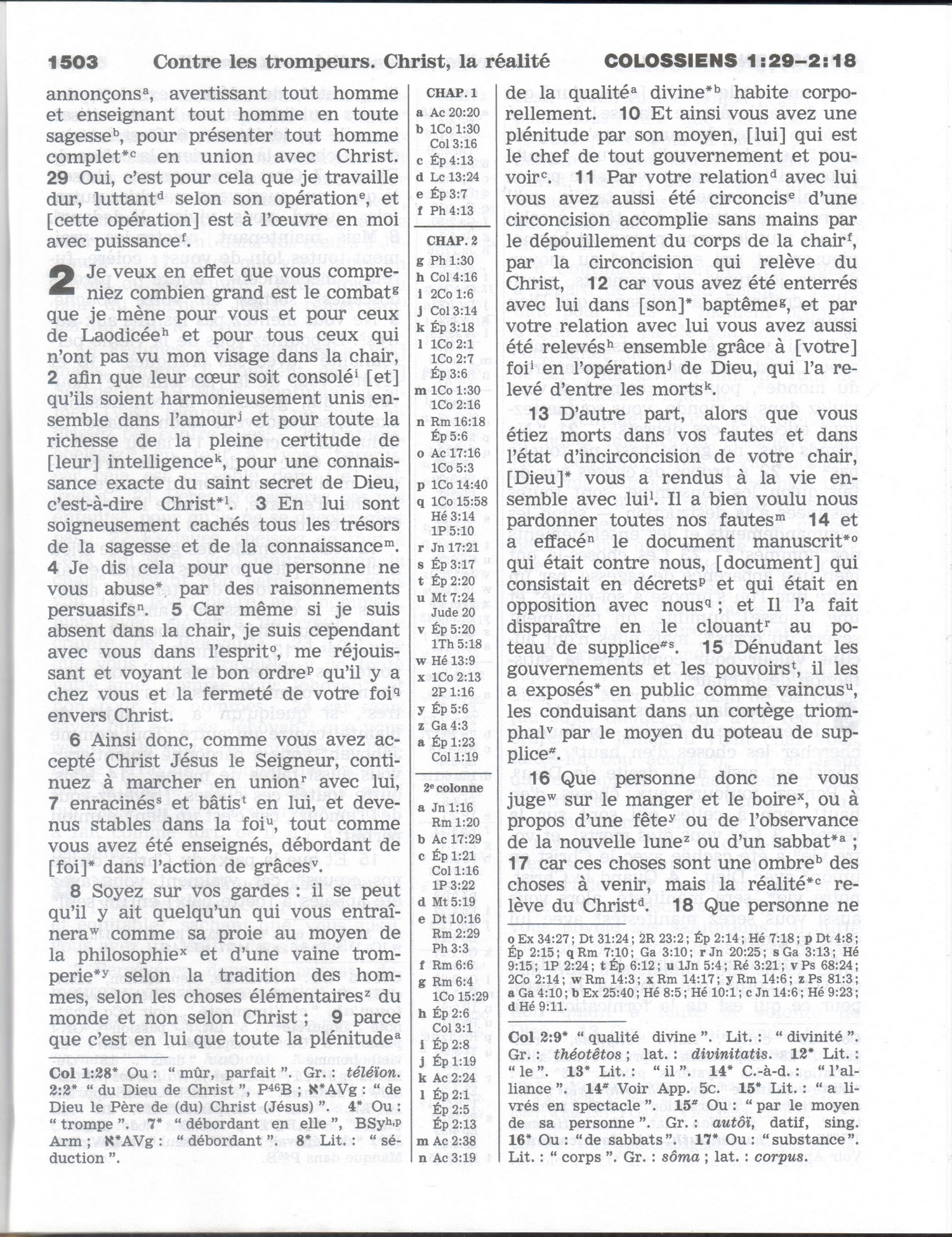 - Car en lui, habite corporellement toute la plénitude de la divinité. (Bible à la Colombe + #)
