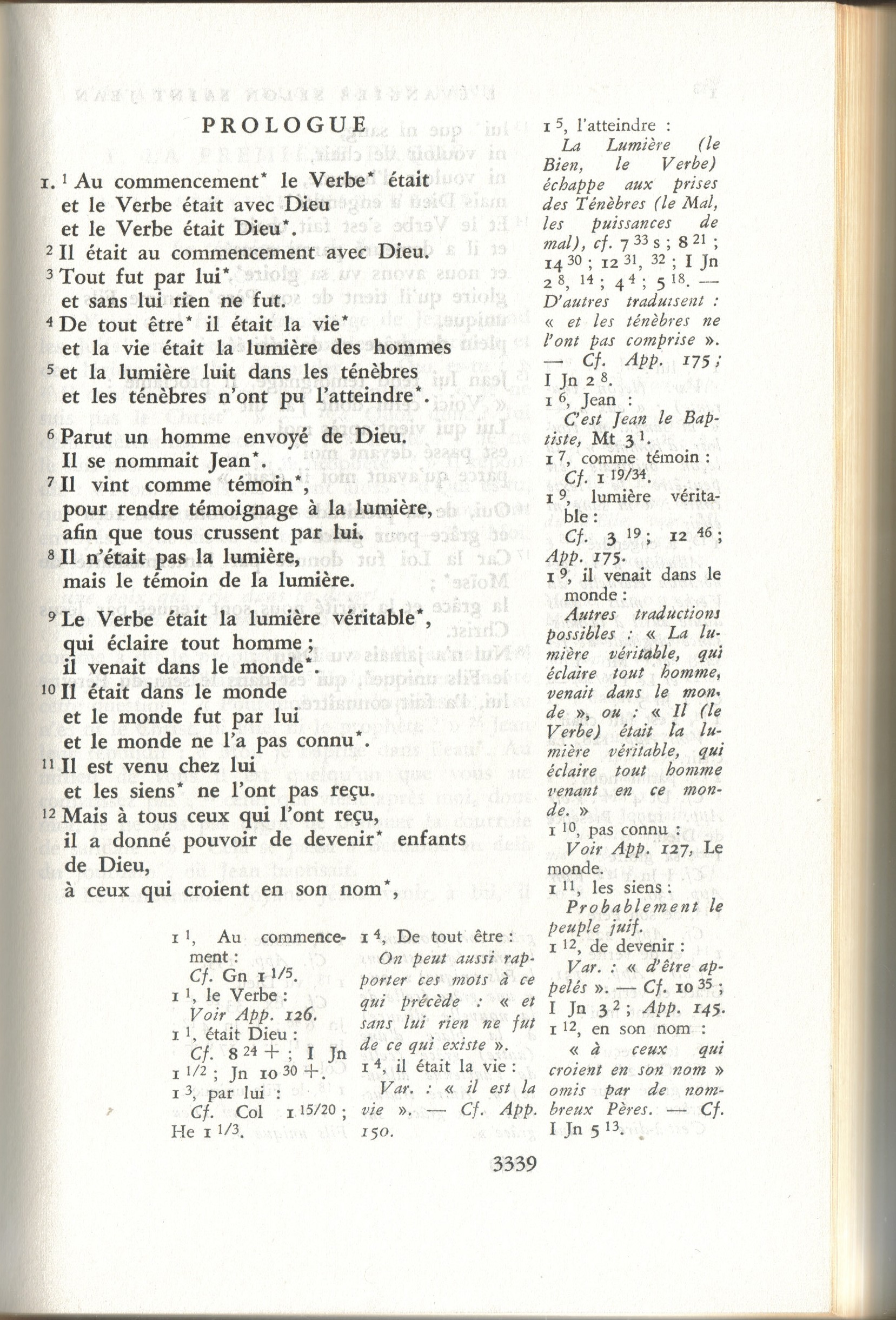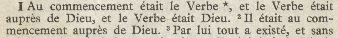 - Au commencement était le Verbe, et le Verbe était auprès de Dieu, et le Verbe était Dieu. (NT E. Osty, 2 édition revue et corrigée - 1949)