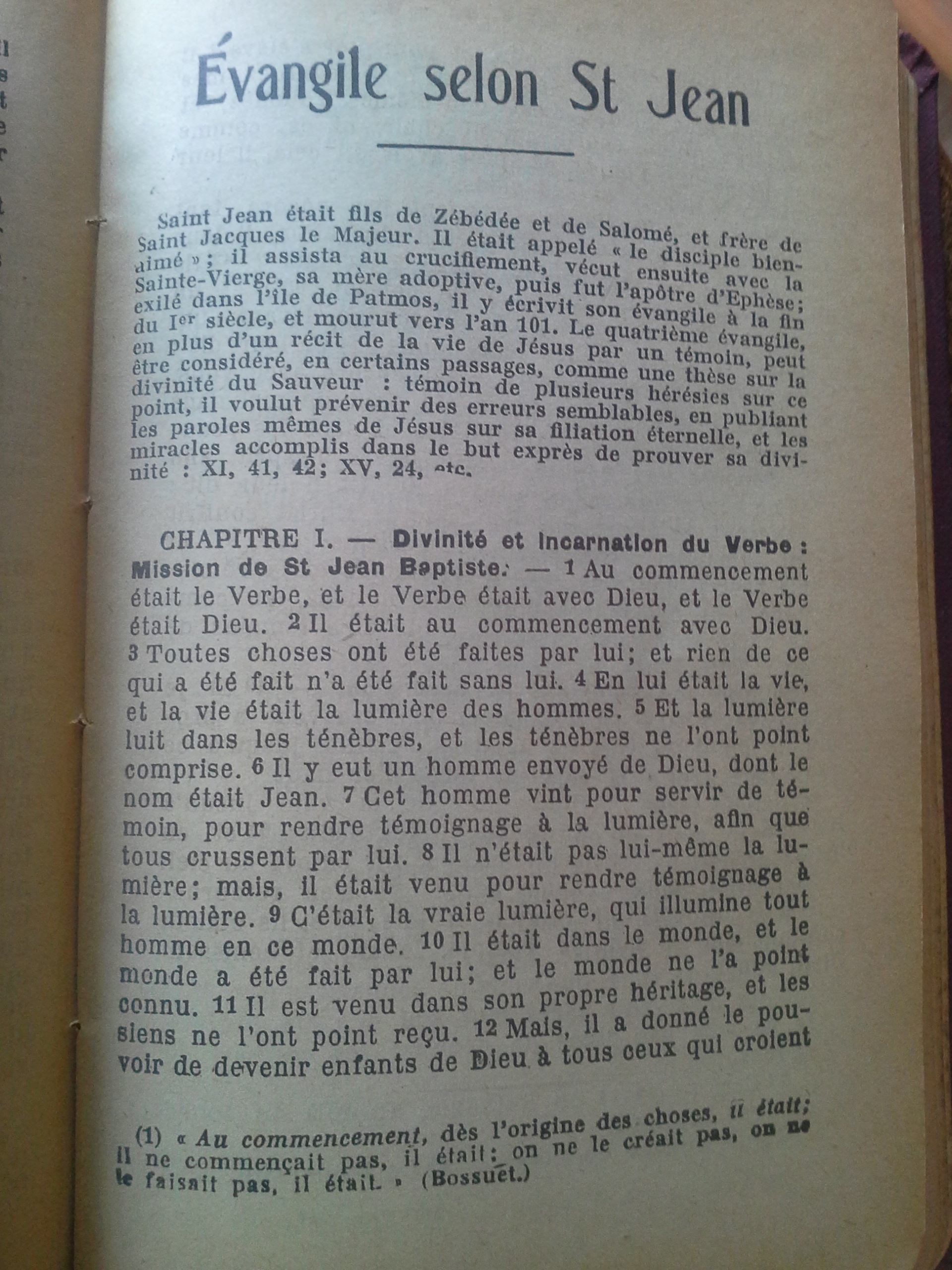 - Au commencement était le Verbe, et le Verbe était en Dieu, et le Verbe était Dieu. (Les Sts Evangiles, Crampon, Desclee et Cie, 1922)