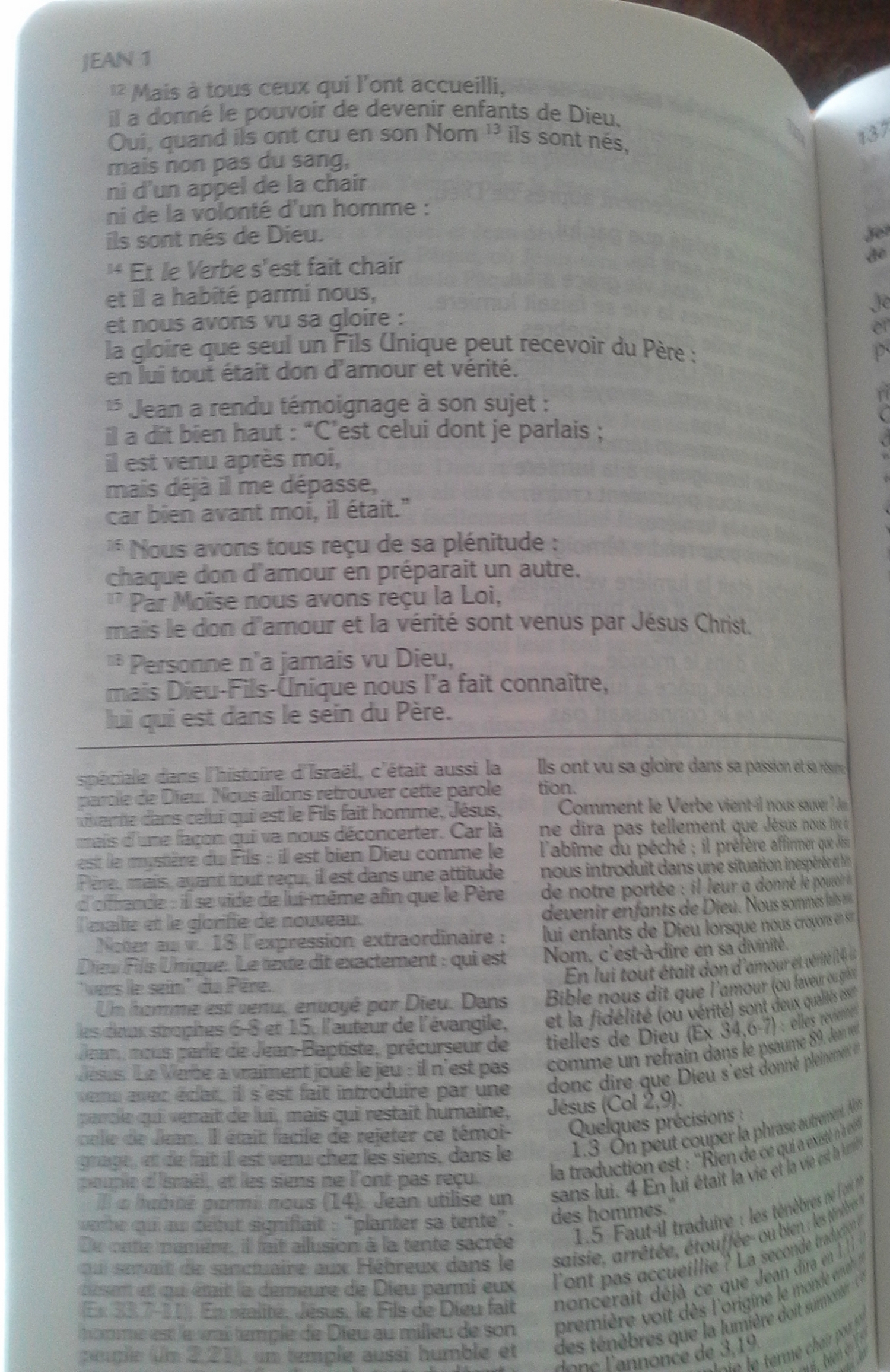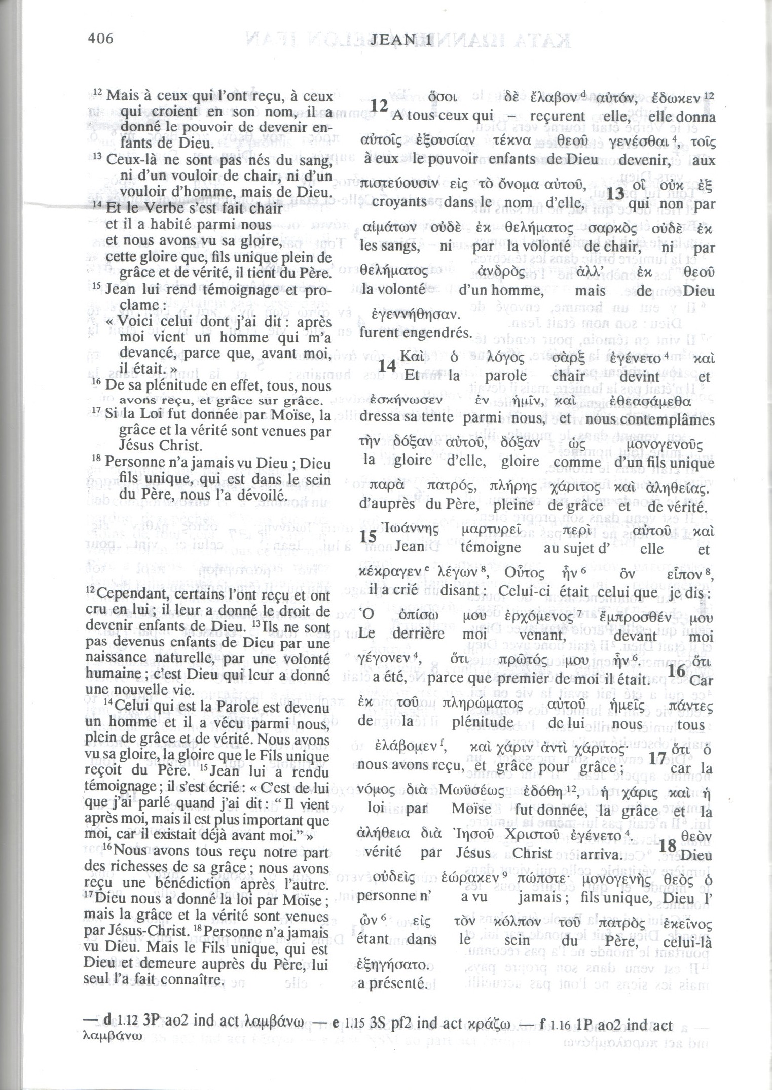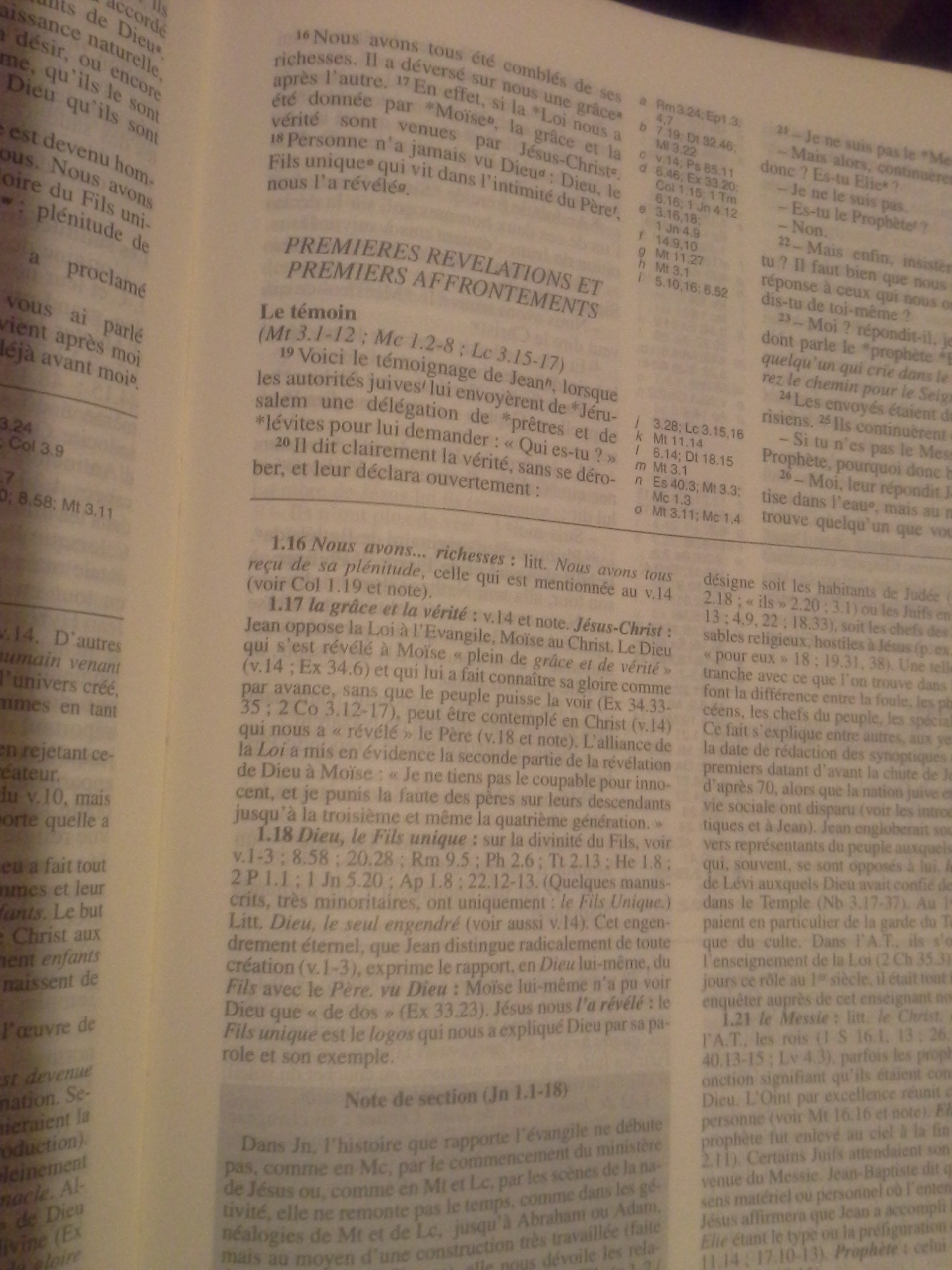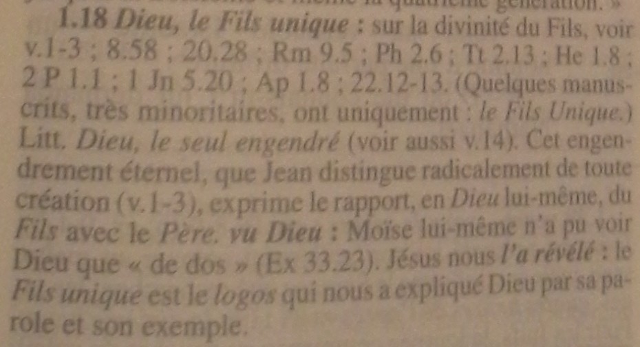 Remarque : D'après la Traduction de monde nouveau de 1963, le "dieu fils unique" (Jésus) se trouve auprès de Dieu ; alors que la version de 1974 nous dit que "le dieu fils unique" (Jésus) se trouve auprès du Père.